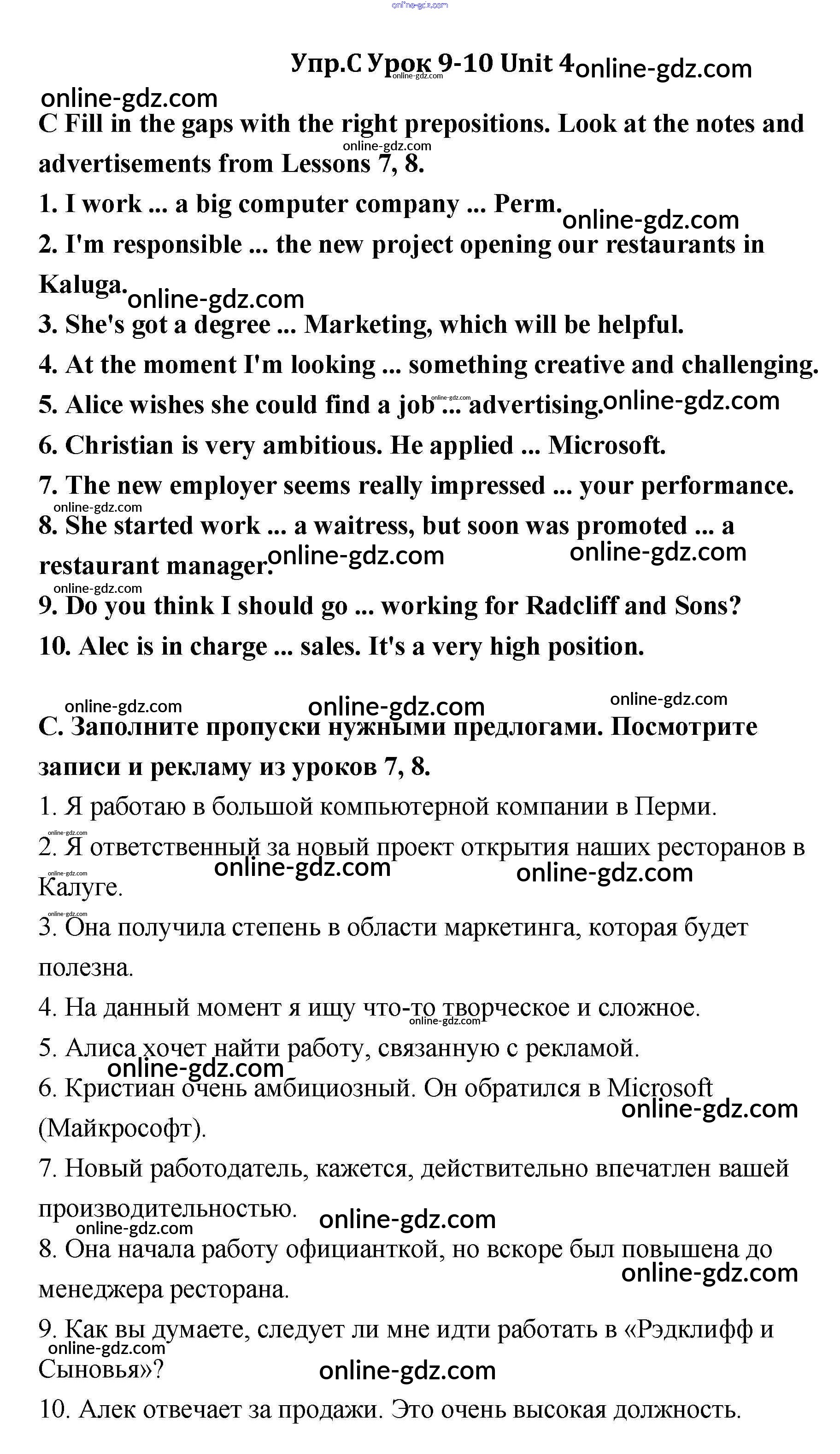 Готовые домашние задания по Английскому языку за 11 класс Учебник Кауфман Happy English 2014 - Lesson 9-10 Unit 4 C