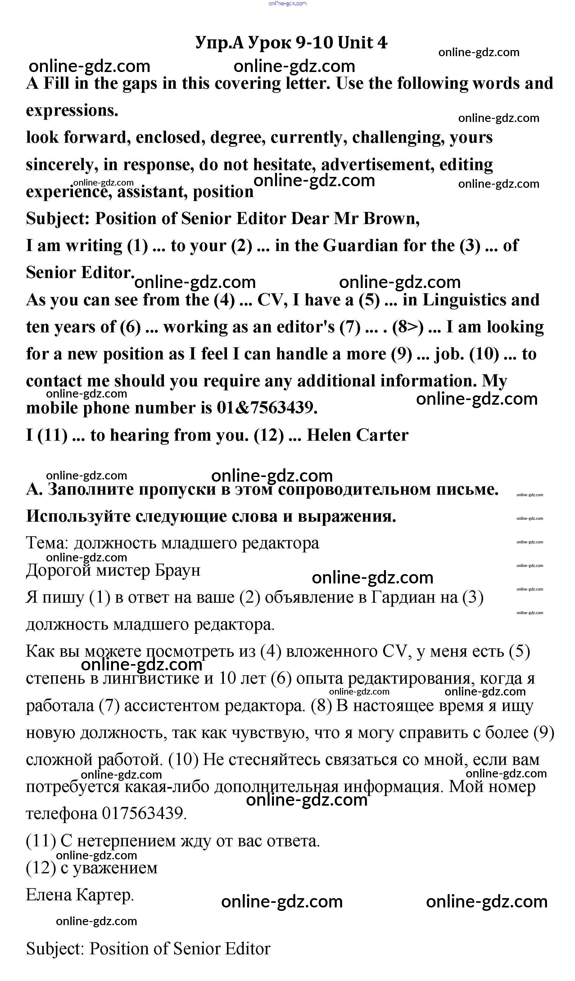 Готовые домашние задания по Английскому языку за 11 класс Учебник Кауфман Happy English 2014 - Lesson 9-10 Unit 4 A