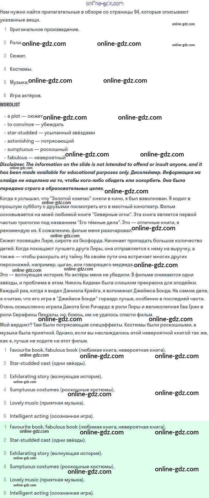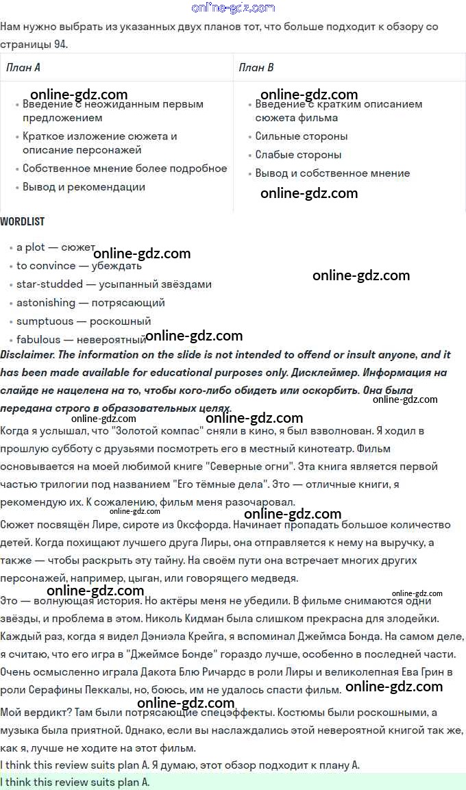 Готовые домашние задания по Английскому языку за 11 класс Учебник Ларионова, Комарова Инновационная школа Базовый уровень 2018 - Страницы 95