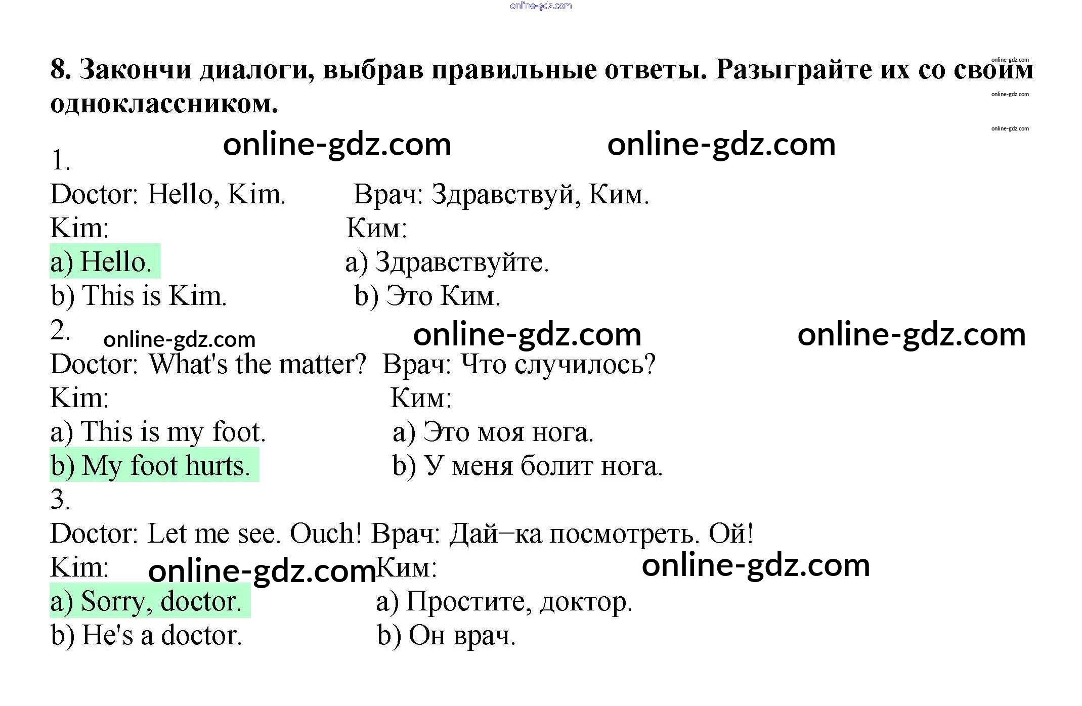 Готовые домашние задания по Английскому языку за 2 класс Рабочая тетрадь Баранова, Эванс Starlight Углубленный уровень 2016 - Module 3. My Body 8
