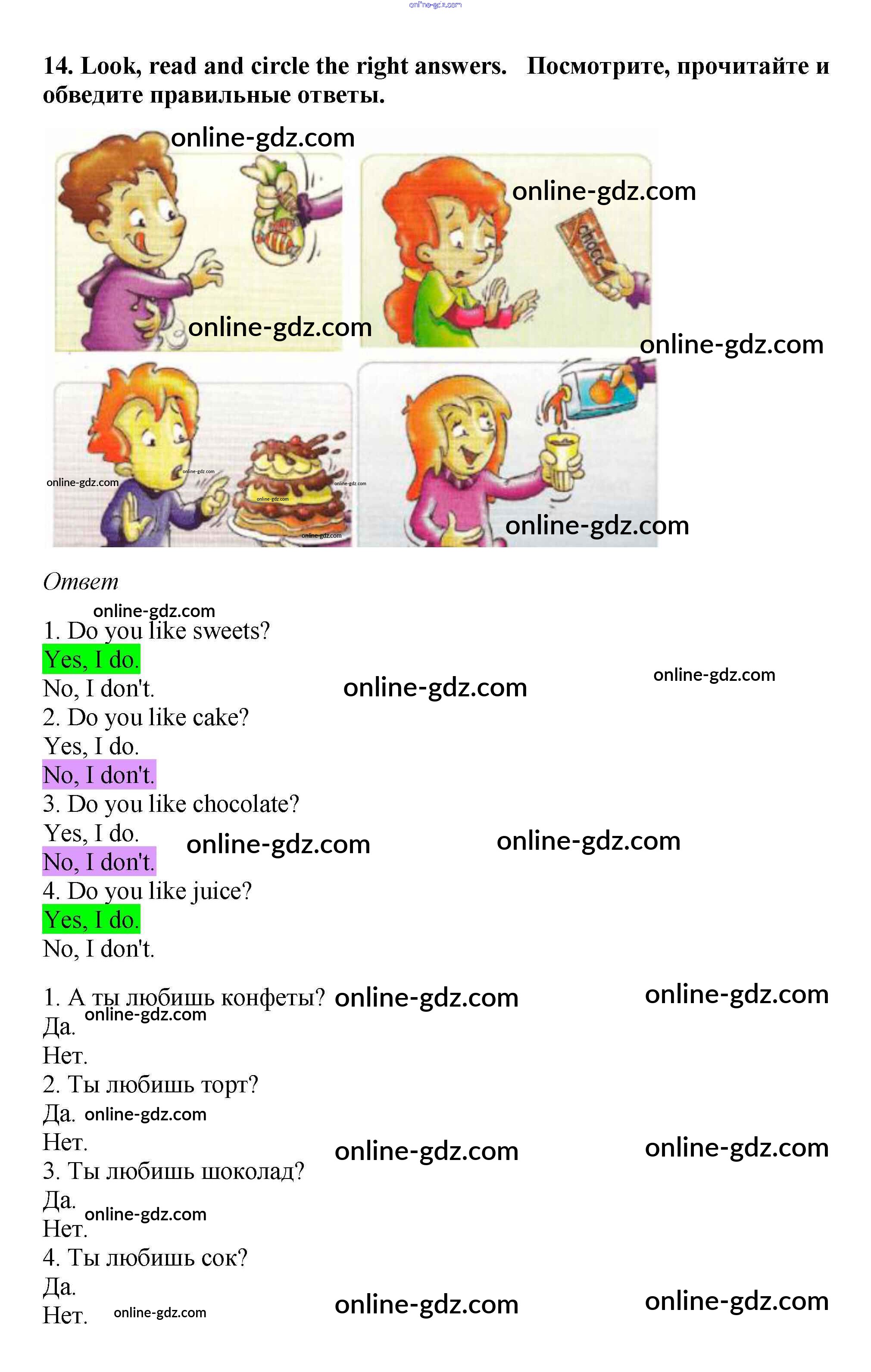 Готовые домашние задания по Английскому языку за 2 класс Рабочая тетрадь Баранова, Эванс Starlight Углубленный уровень 2016 - Module 6. A Sweet Tooth! 14