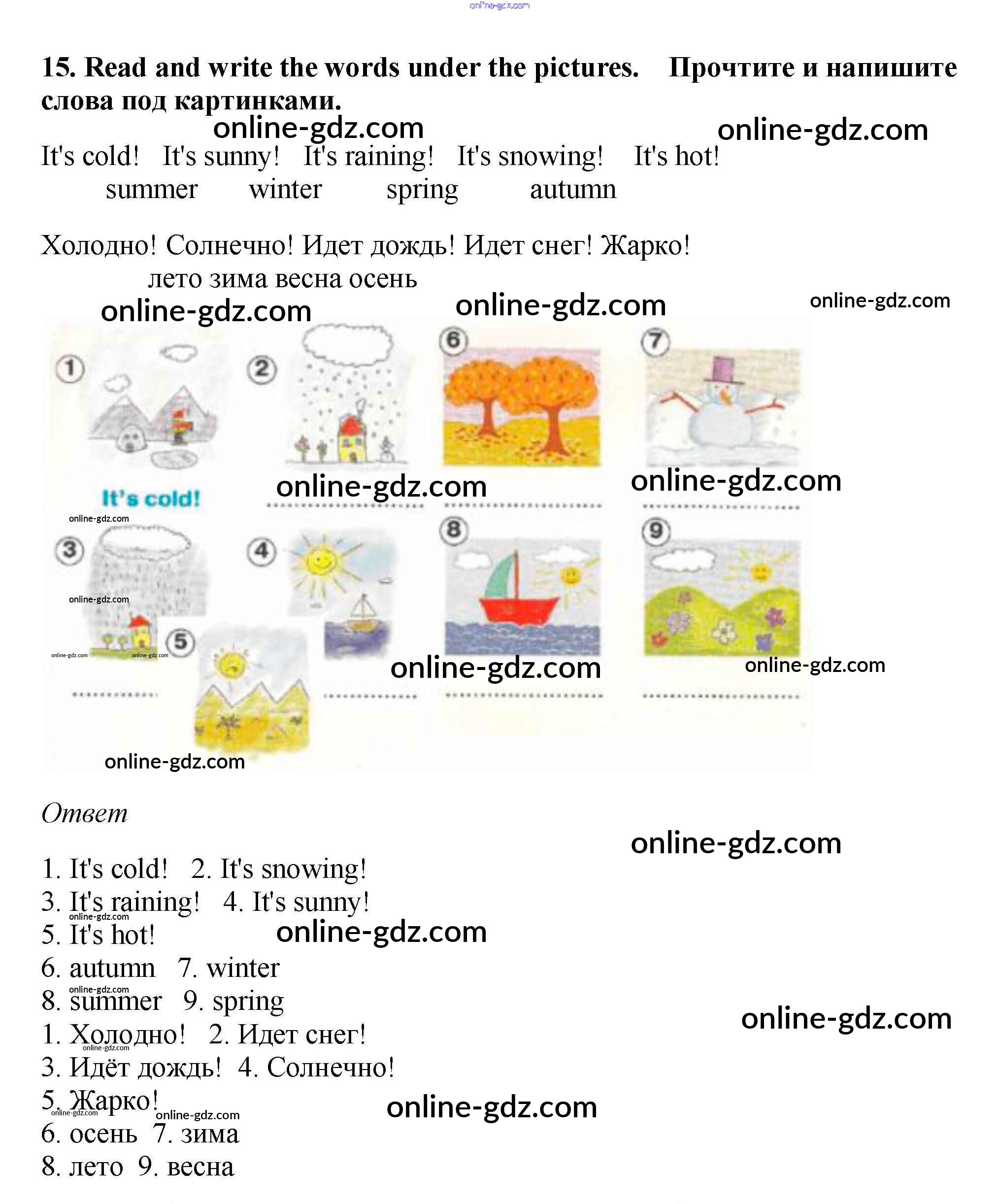 Готовые домашние задания по Английскому языку за 2 класс Рабочая тетрадь Баранова, Эванс Starlight Углубленный уровень 2016 - Module 7. The Weather 15