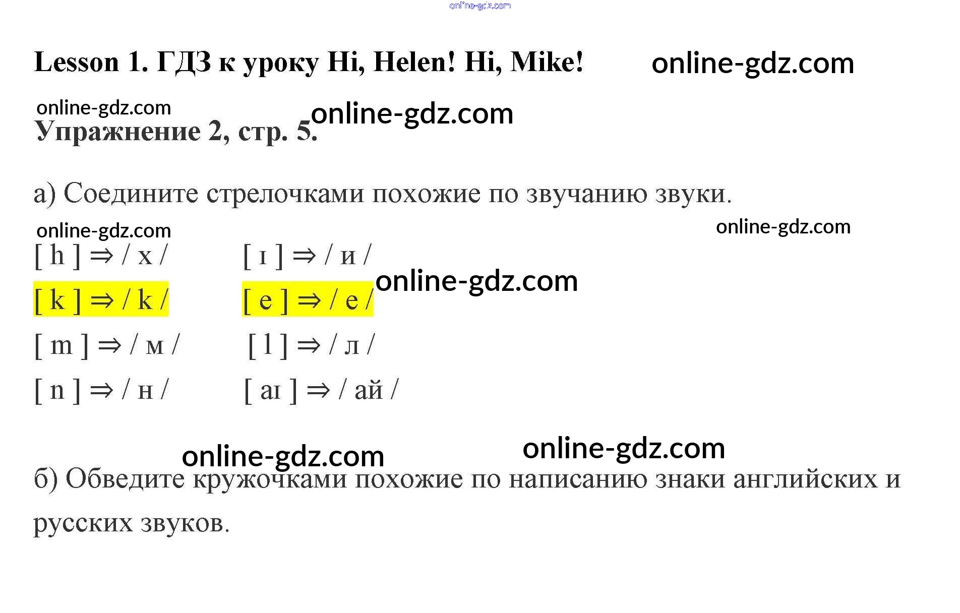 Готовые домашние задания по Английскому языку за 2 класс Рабочая тетрадь Кузовлёв, Перегудова 2011 - Lesson 1. Hi, Helen! Hi, Mike! 5