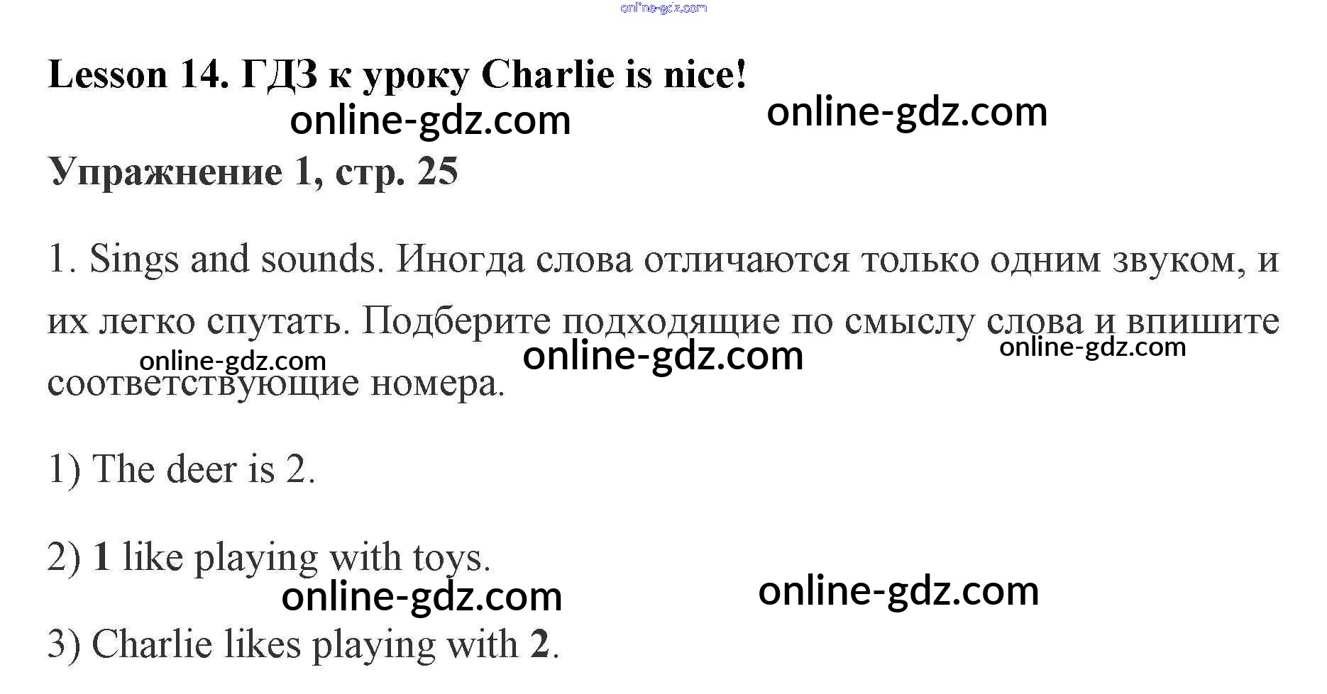 Готовые домашние задания по Английскому языку за 2 класс Рабочая тетрадь Кузовлёв, Перегудова 2011 - Lesson 14. Charlie is nice! 25