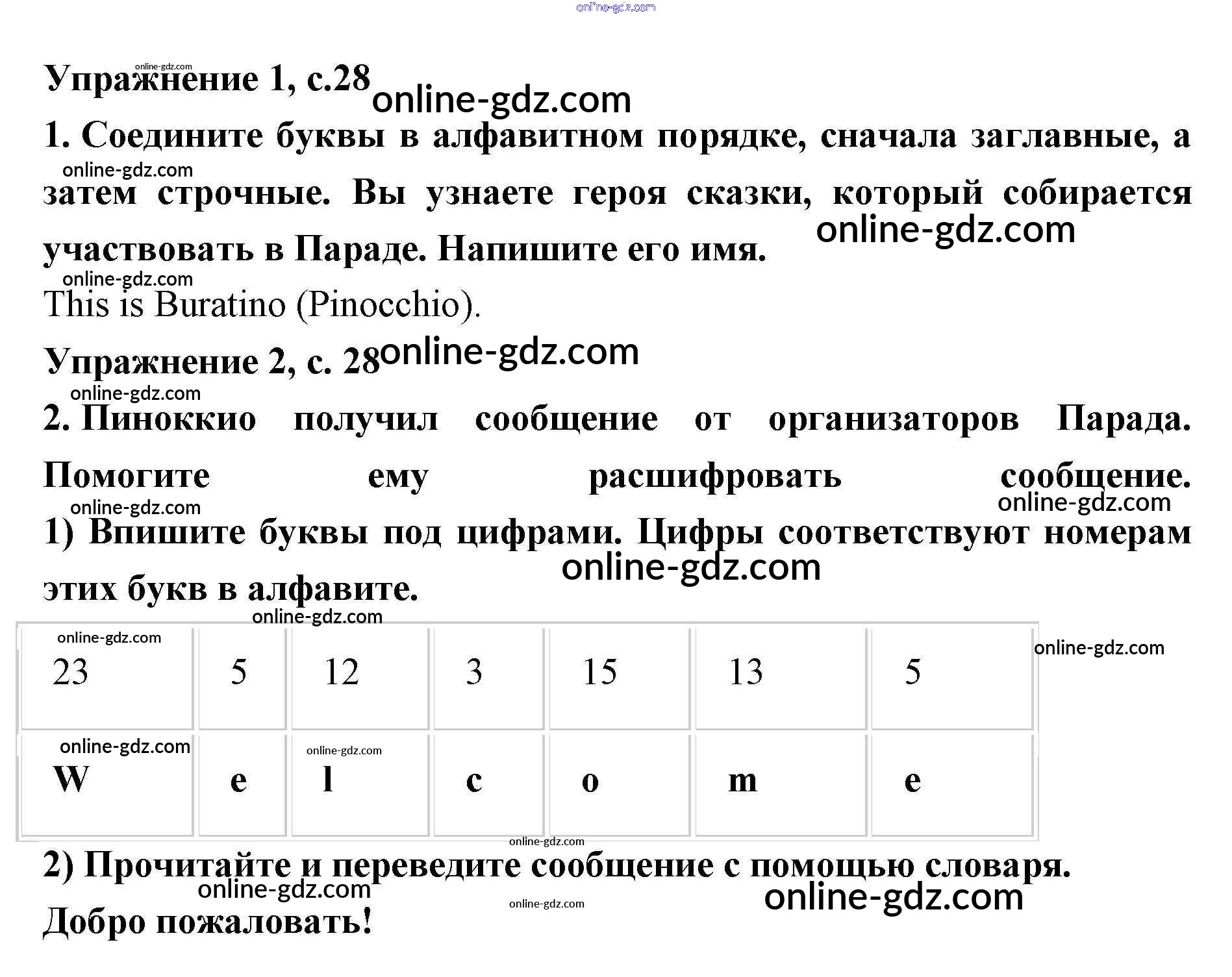 Готовые домашние задания по Английскому языку за 2 класс Рабочая тетрадь Кузовлёв, Перегудова 2011 - Lesson 17. This is the English ABC 28