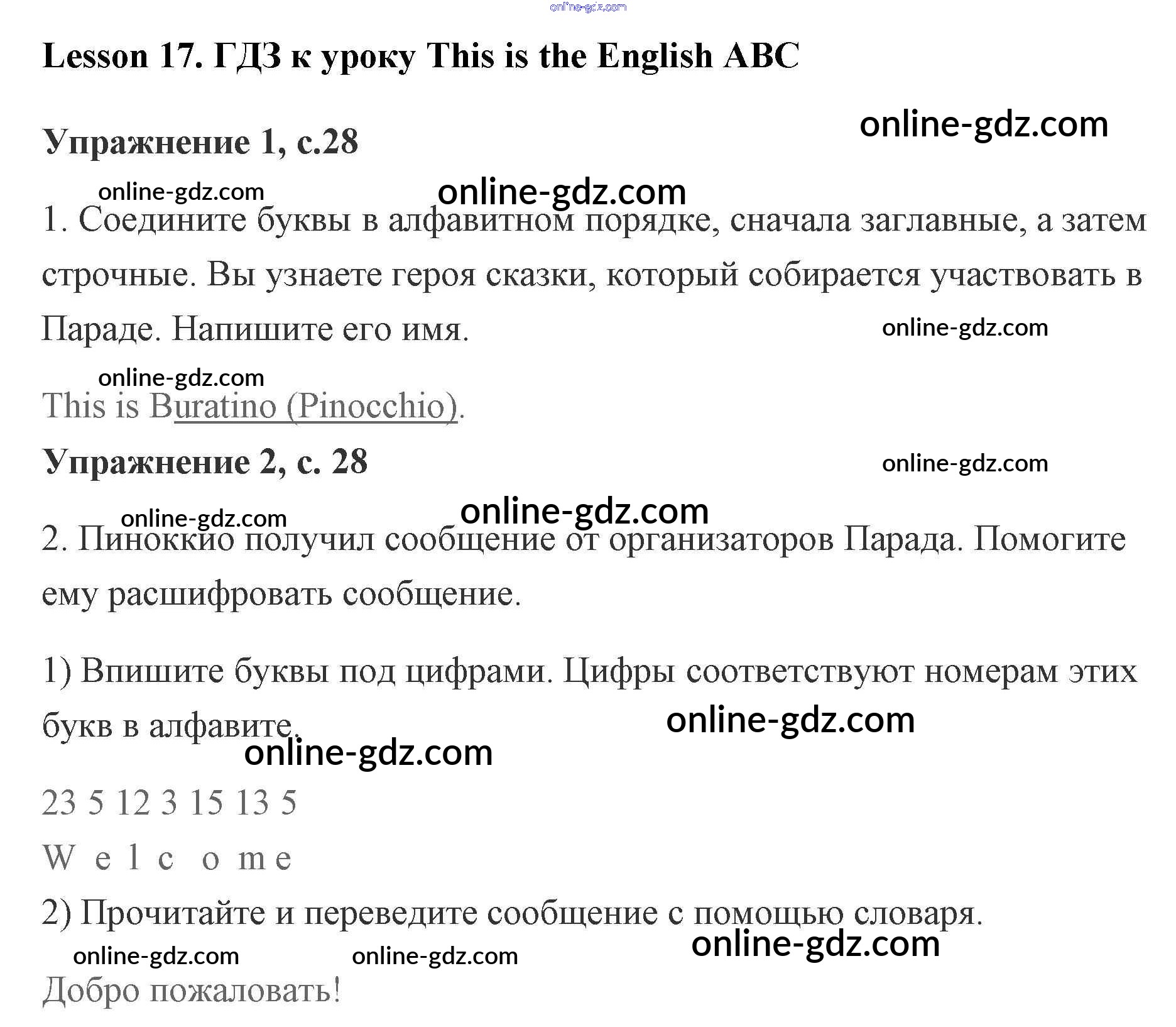 класс, от простых до сложных. Мы стремимся предоставить нашим пользователям максимально точные и полезные ответы к Рабочей тетради Кузовлёв, Перегудова - Lesson 17. This is the English ABC 28, поэтому мы постоянно работаем над улучшением нашего контента. Мы всегда готовы помочь!