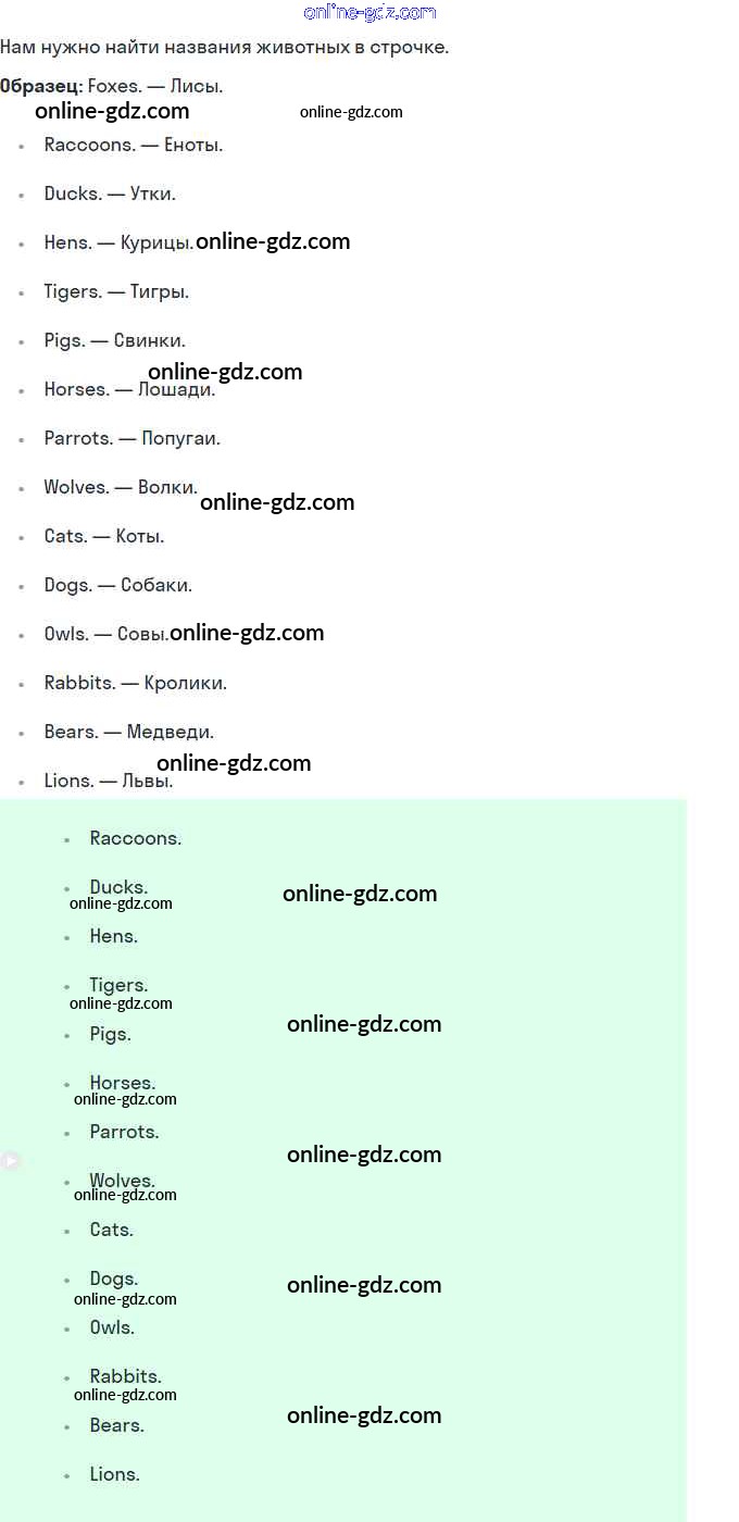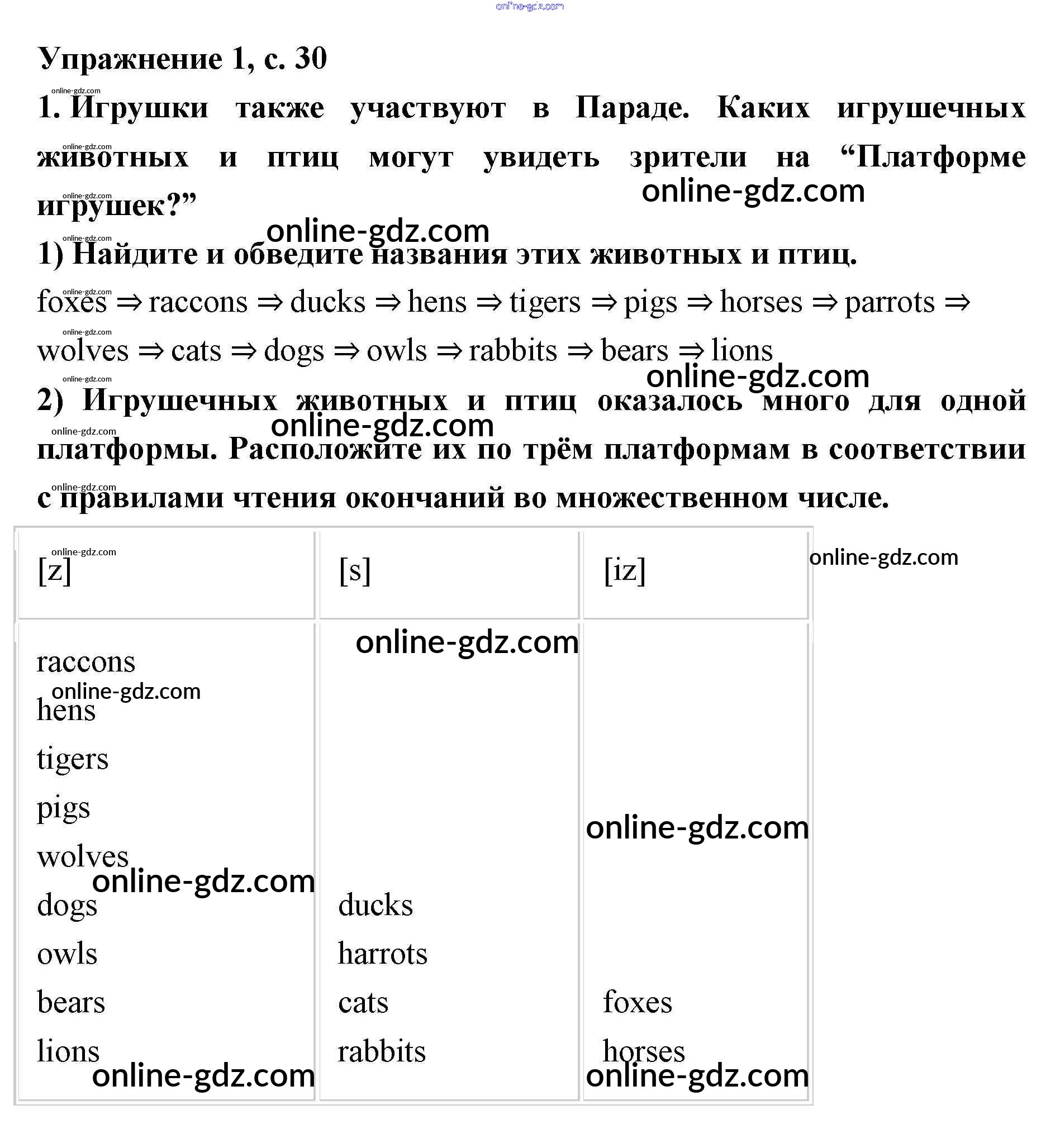 Готовые домашние задания по Английскому языку за 2 класс Рабочая тетрадь Кузовлёв, Перегудова 2011 - Lesson 18. I like animals 30