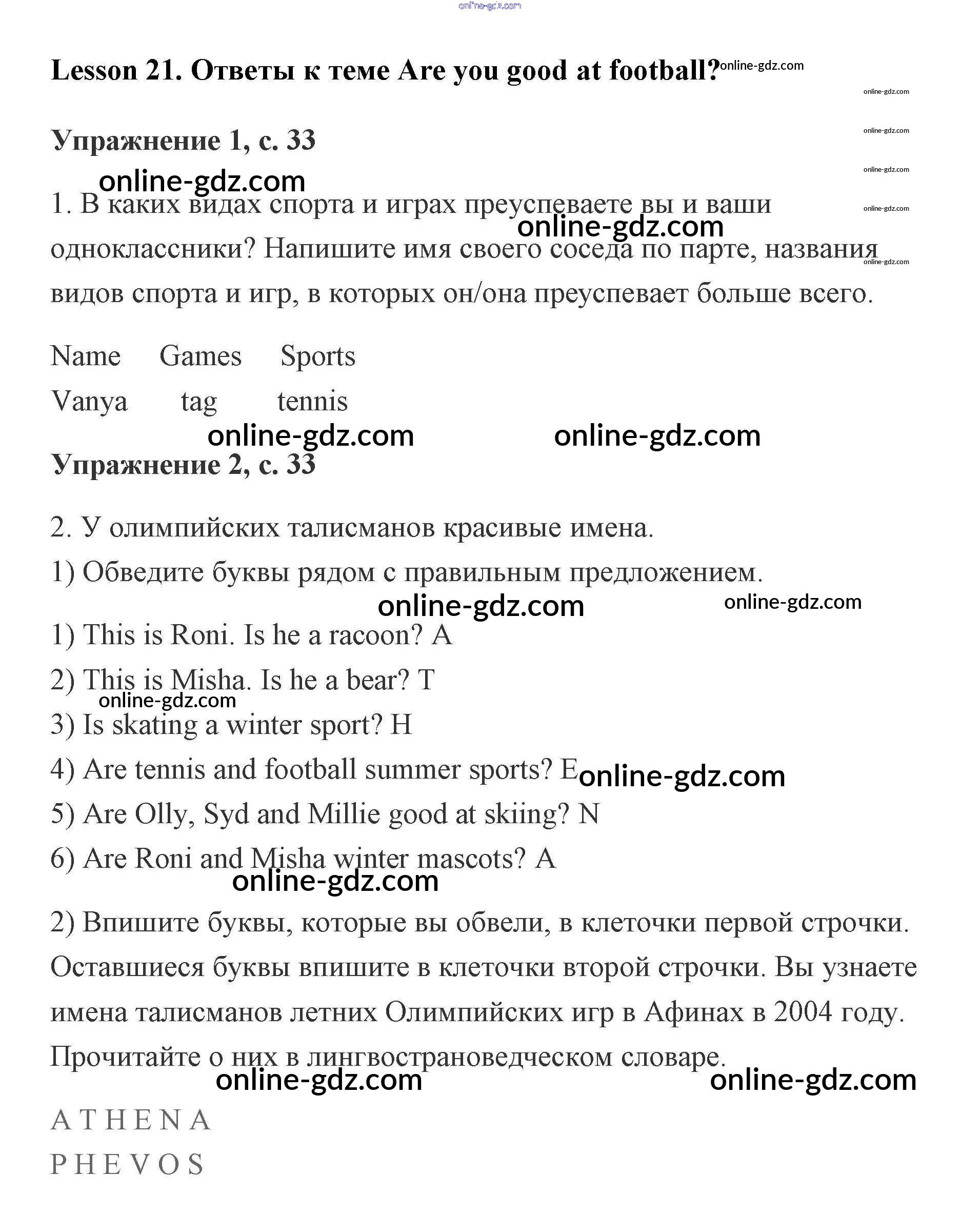 Готовые домашние задания по Английскому языку за 2 класс Рабочая тетрадь Кузовлёв, Перегудова 2011 - Lesson 21. Are you good at football 33