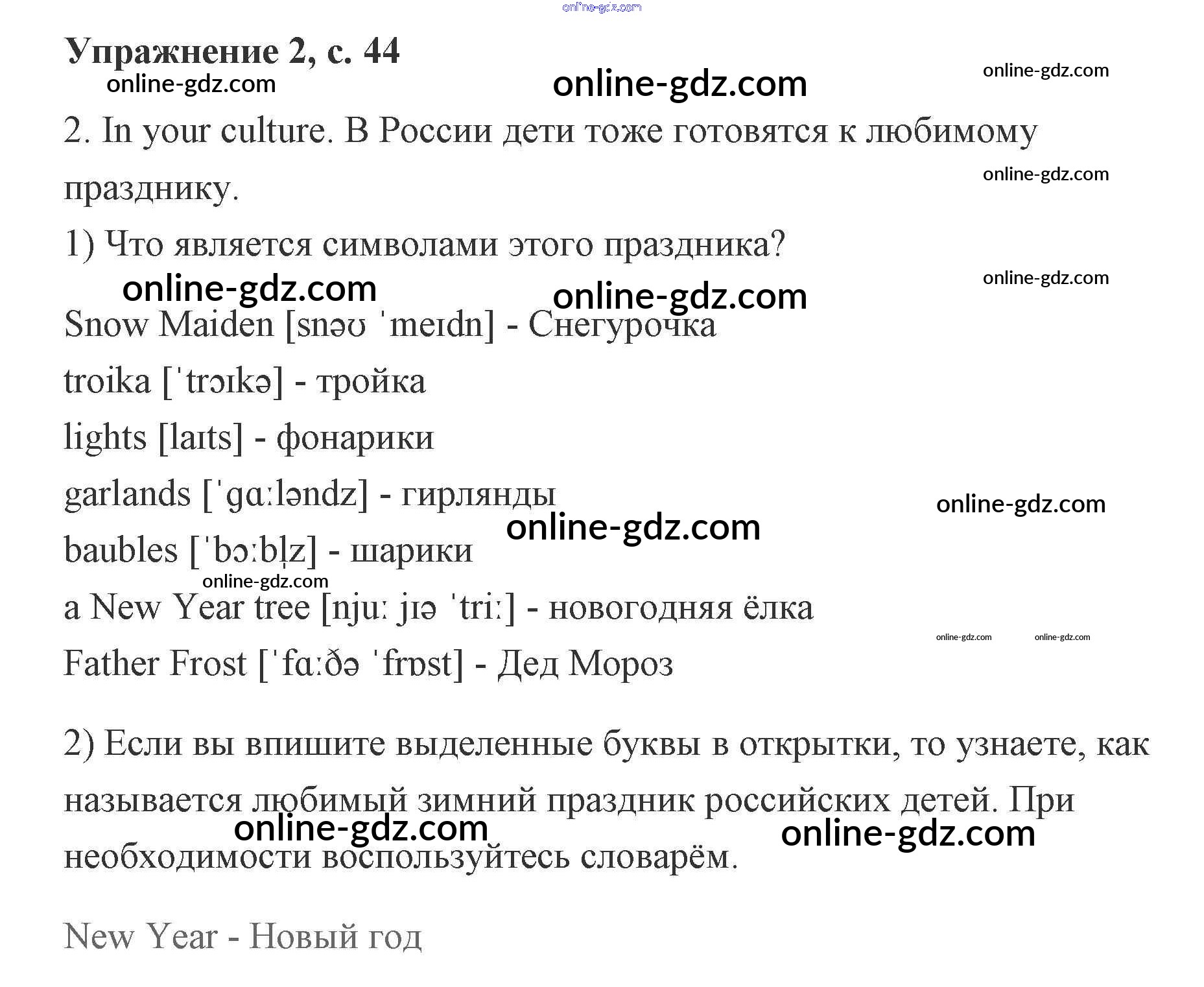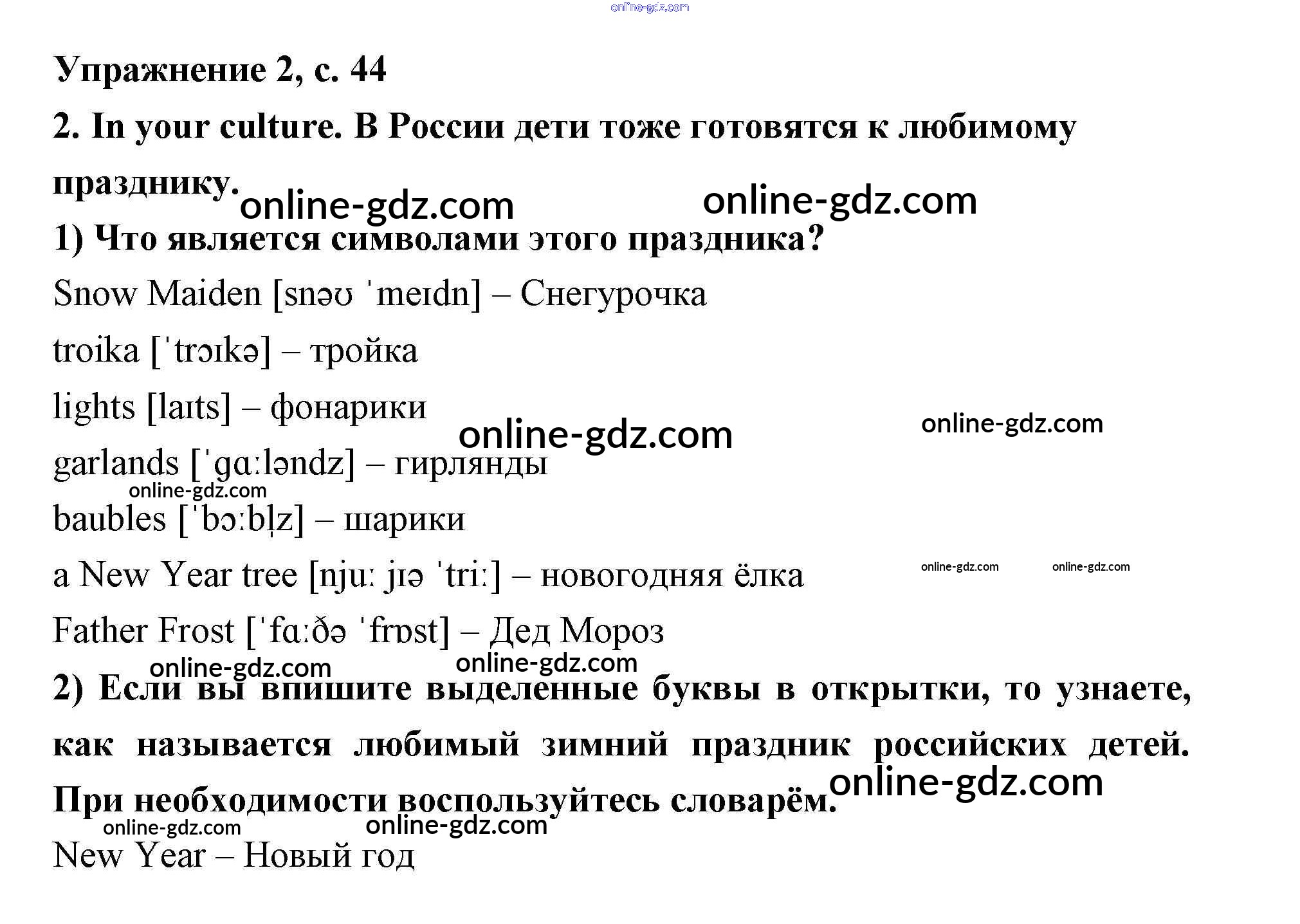 Готовые домашние задания по Английскому языку за 2 класс Рабочая тетрадь Кузовлёв, Перегудова 2011 - Lesson 27. Merry Christmas and Happy New Year! 44