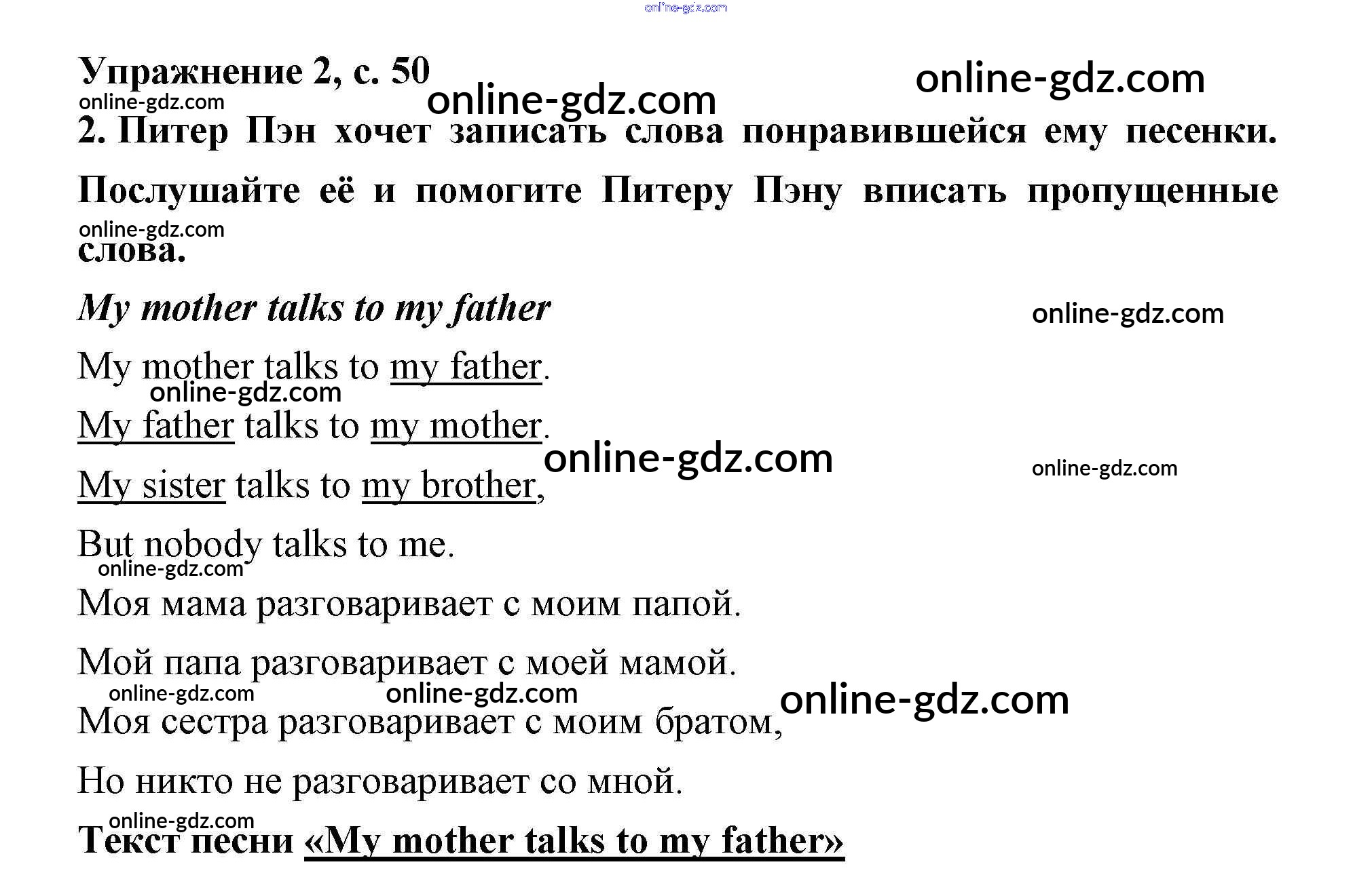 Готовые домашние задания по Английскому языку за 2 класс Рабочая тетрадь Кузовлёв, Перегудова 2011 - Lesson 30. Wendy and her family 50