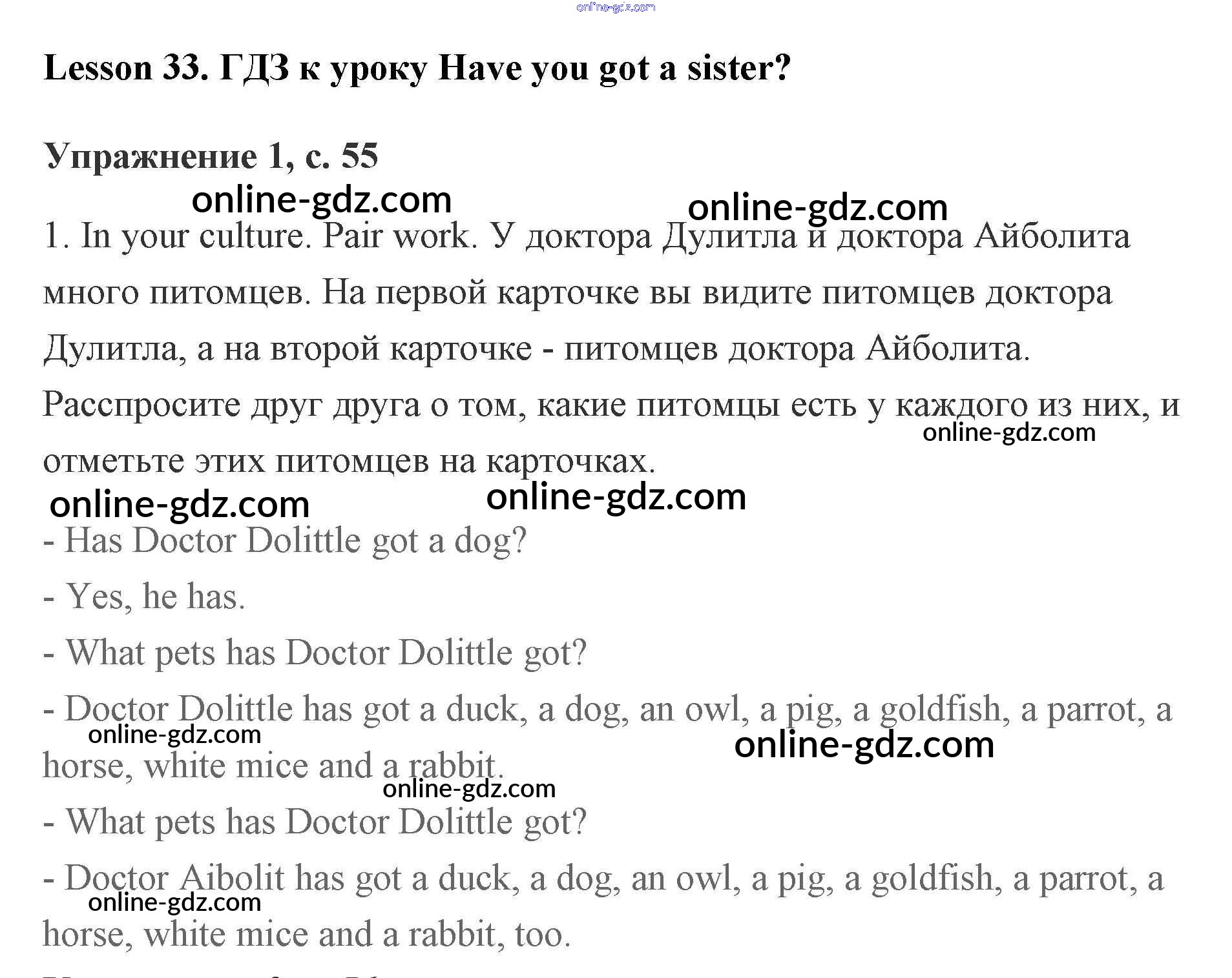 Готовые домашние задания по Английскому языку за 2 класс Рабочая тетрадь Кузовлёв, Перегудова 2011 - Lesson 33. Have you got a sister 55