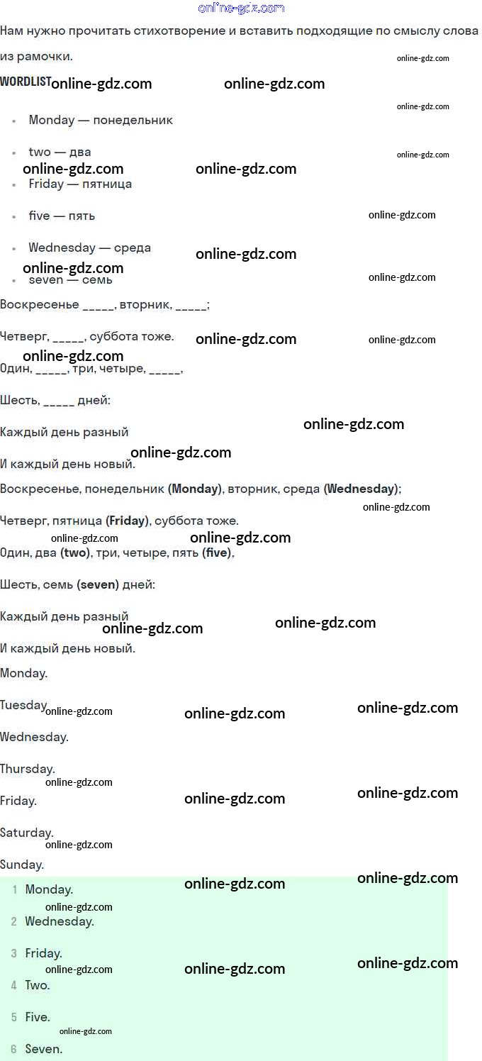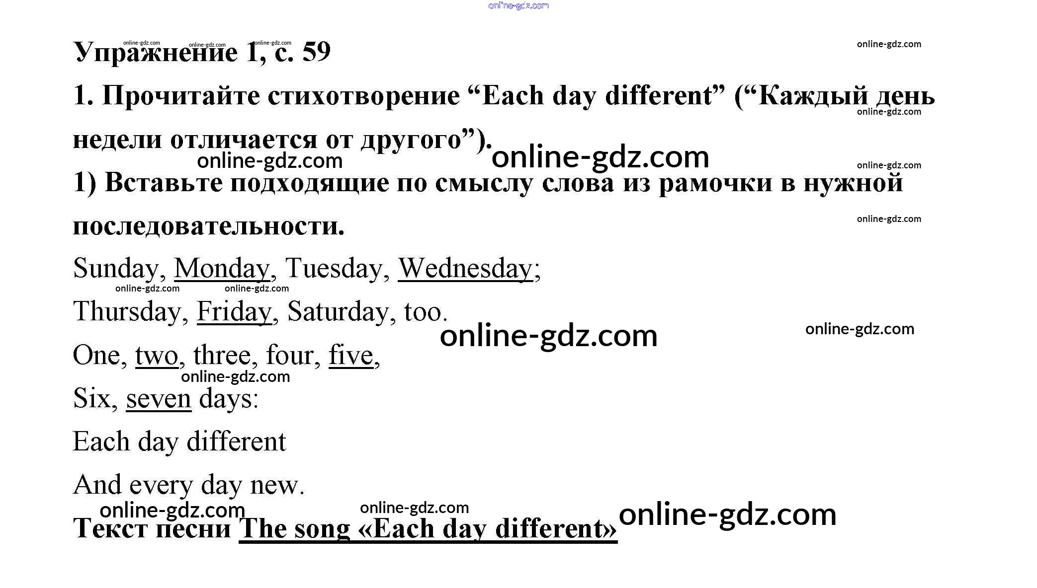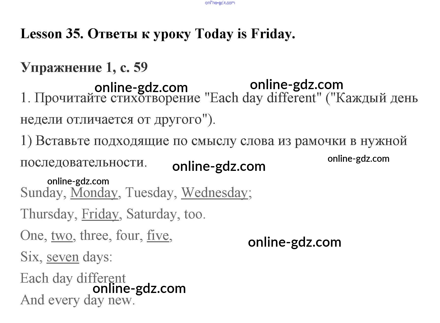 Готовые домашние задания по Английскому языку за 2 класс Рабочая тетрадь Кузовлёв, Перегудова 2011 - Lesson 35. Today is Friday 59