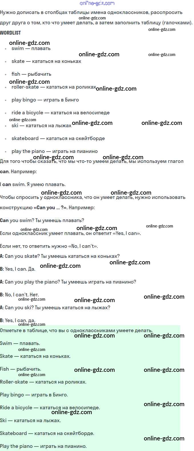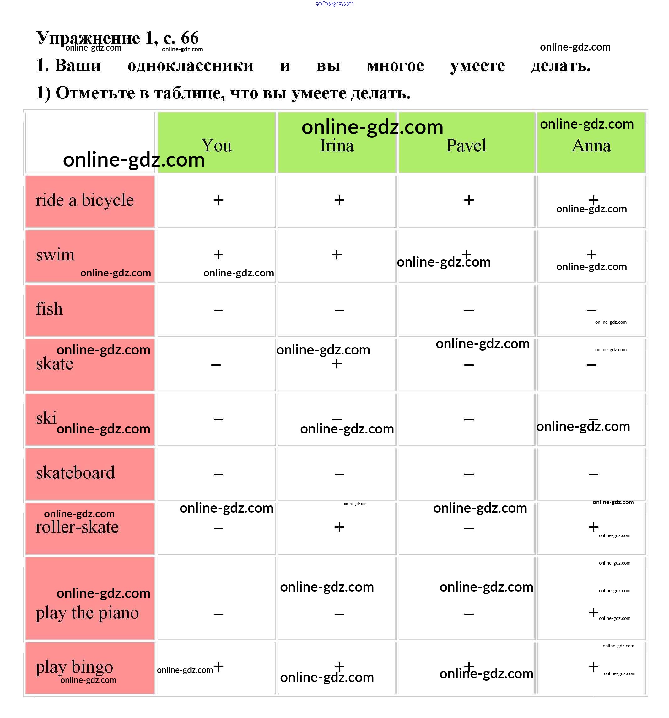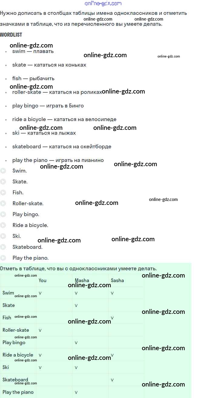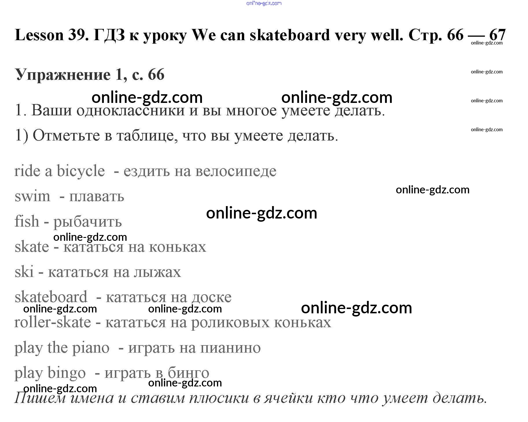 Готовые домашние задания по Английскому языку за 2 класс Рабочая тетрадь Кузовлёв, Перегудова 2011 - Lesson 39. We can skateboard very well 66