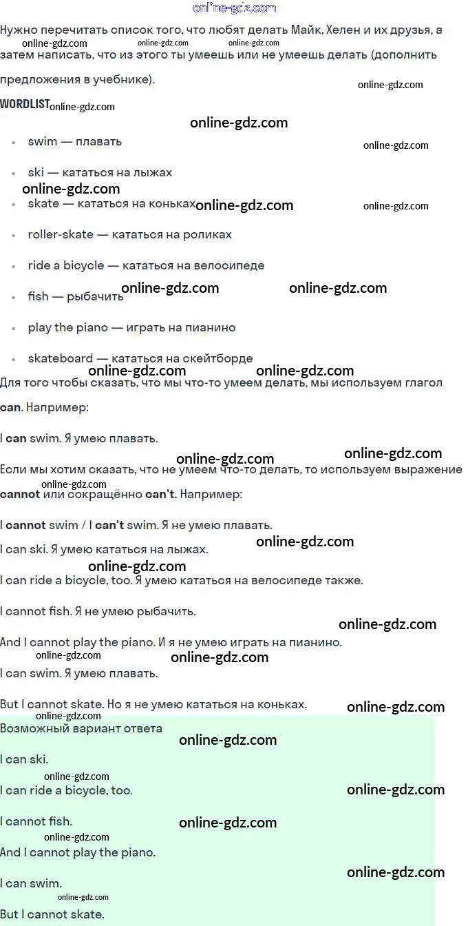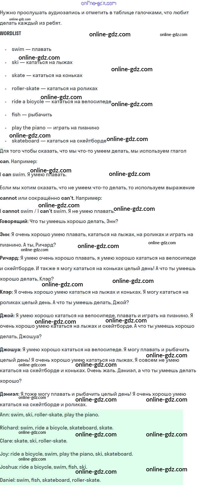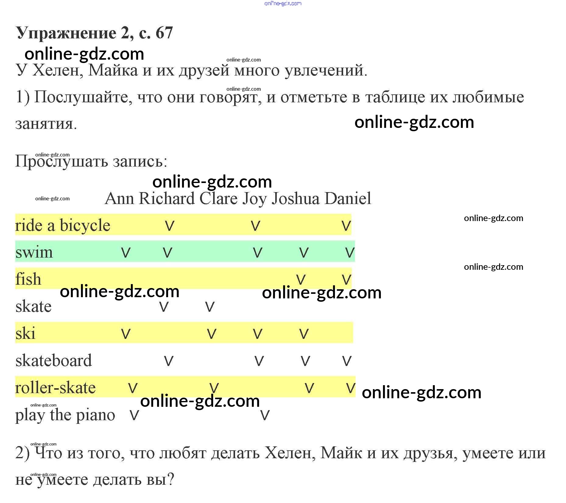 Готовые домашние задания по Английскому языку за 2 класс Рабочая тетрадь Кузовлёв, Перегудова 2011 - Lesson 39. We can skateboard very well 67