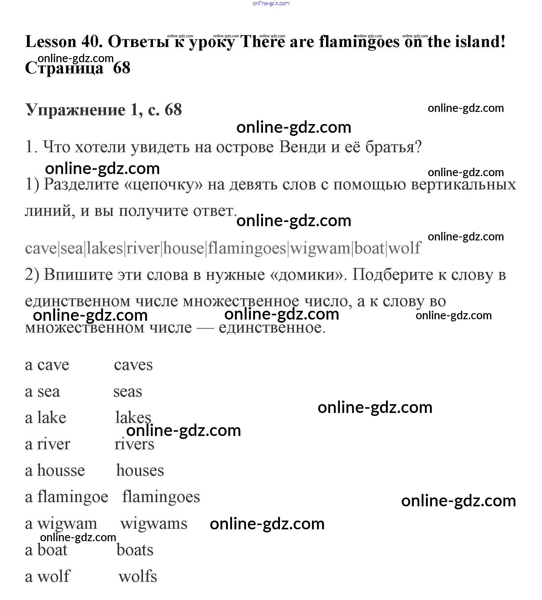 Готовые домашние задания по Английскому языку за 2 класс Рабочая тетрадь Кузовлёв, Перегудова 2011 - Lesson 40. There are flamingoes on the island! 68