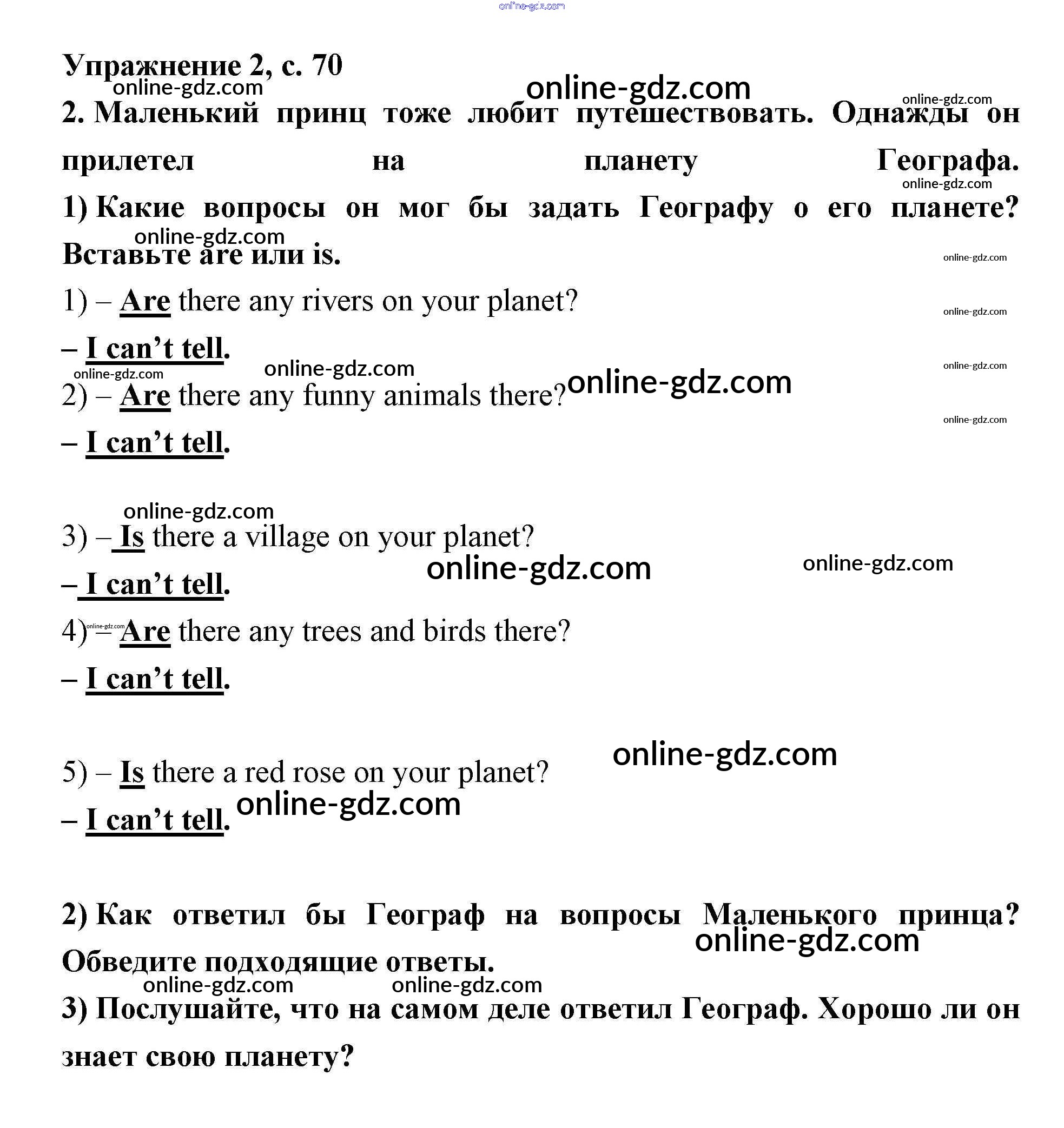 Готовые домашние задания по Английскому языку за 2 класс Рабочая тетрадь Кузовлёв, Перегудова 2011 - Lesson 41. Is there a cave on the island 70