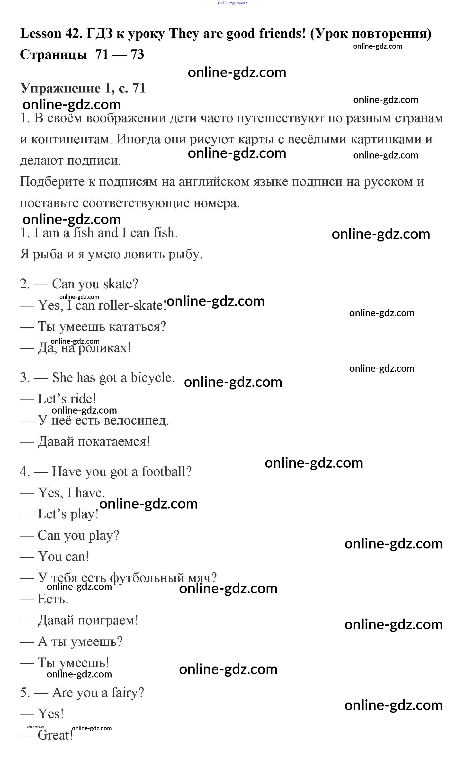 класс, от простых до сложных. Мы стремимся предоставить нашим пользователям максимально точные и полезные ответы к Рабочей тетради Кузовлёв, Перегудова - Lesson 42. They are good friends! (Урок повторения) 71, поэтому мы постоянно работаем над улучшением нашего контента. Мы всегда готовы помочь!