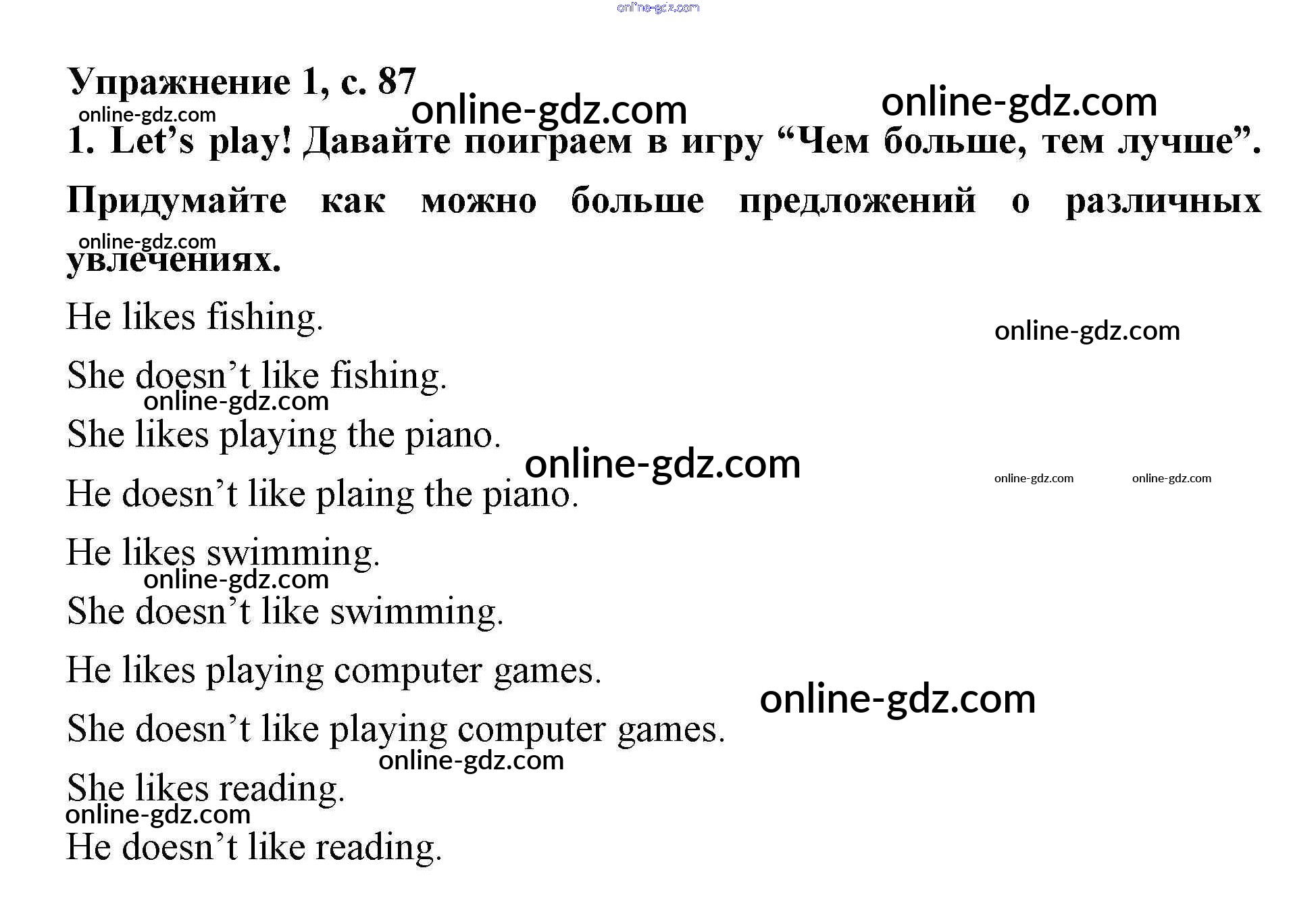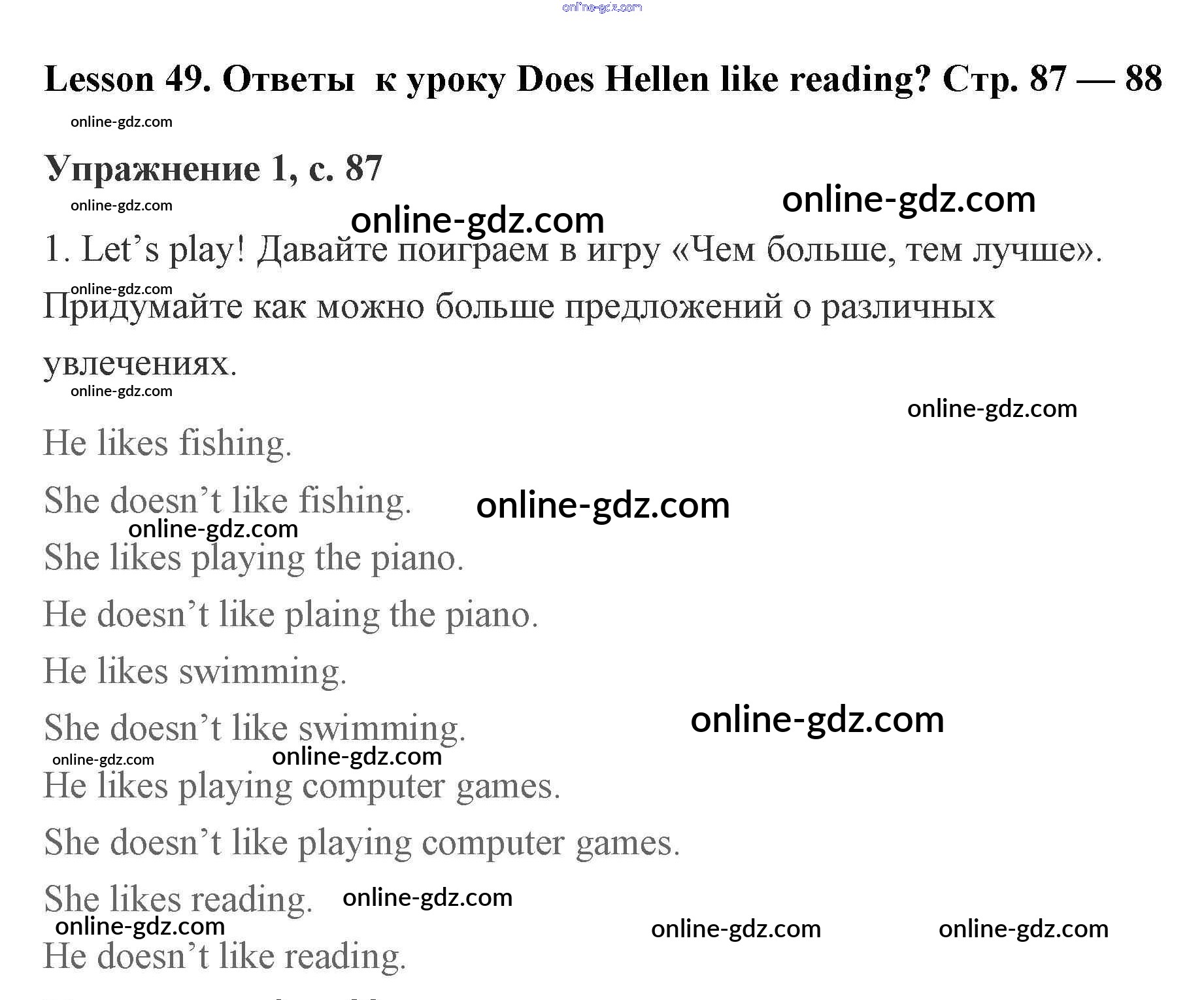 Готовые домашние задания по Английскому языку за 2 класс Рабочая тетрадь Кузовлёв, Перегудова 2011 - Lesson 49. Does Hellen like reading 87