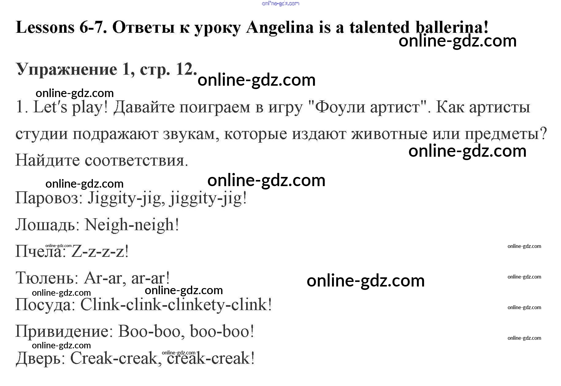Готовые домашние задания по Английскому языку за 2 класс Рабочая тетрадь Кузовлёв, Перегудова 2011 - Lesson 6-7. Angelina is a talented ballerina! 12