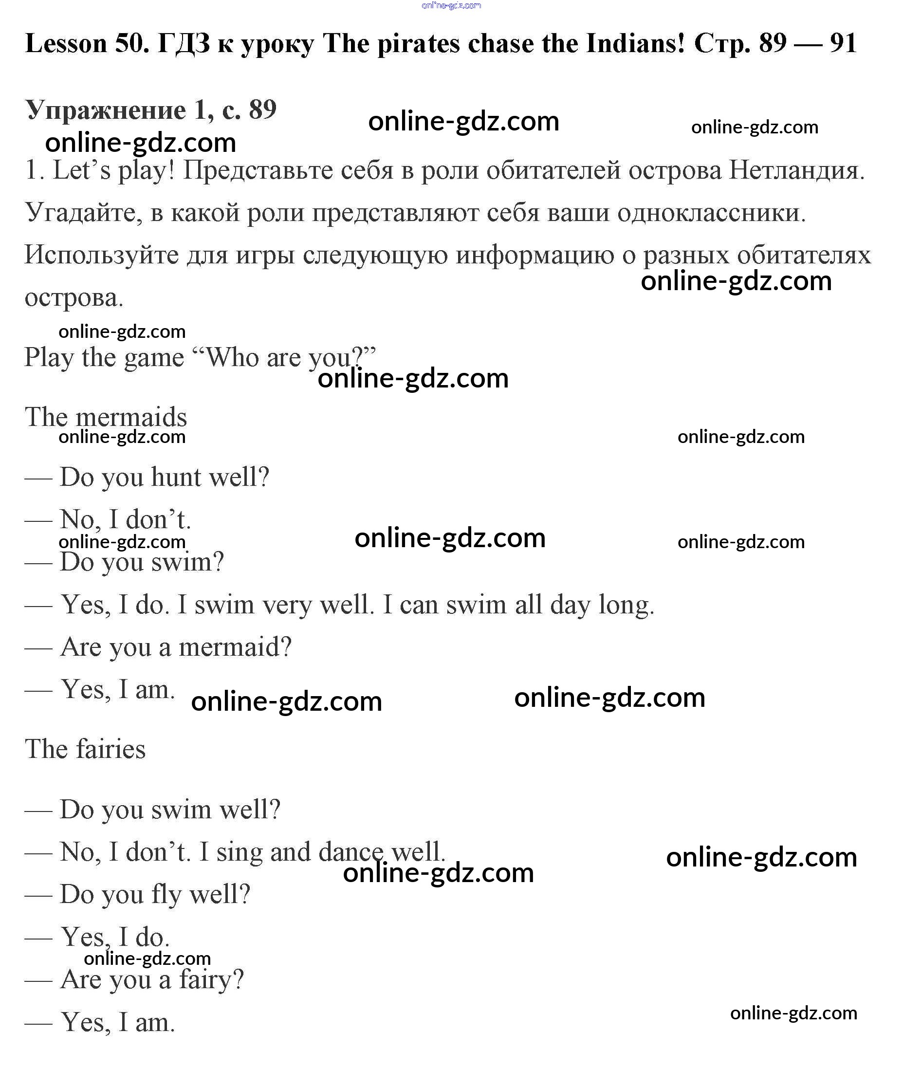 Готовые домашние задания по Английскому языку за 2 класс Рабочая тетрадь Кузовлёв, Перегудова 2011 - Lesson 50. The pirates chase the Indians! 89