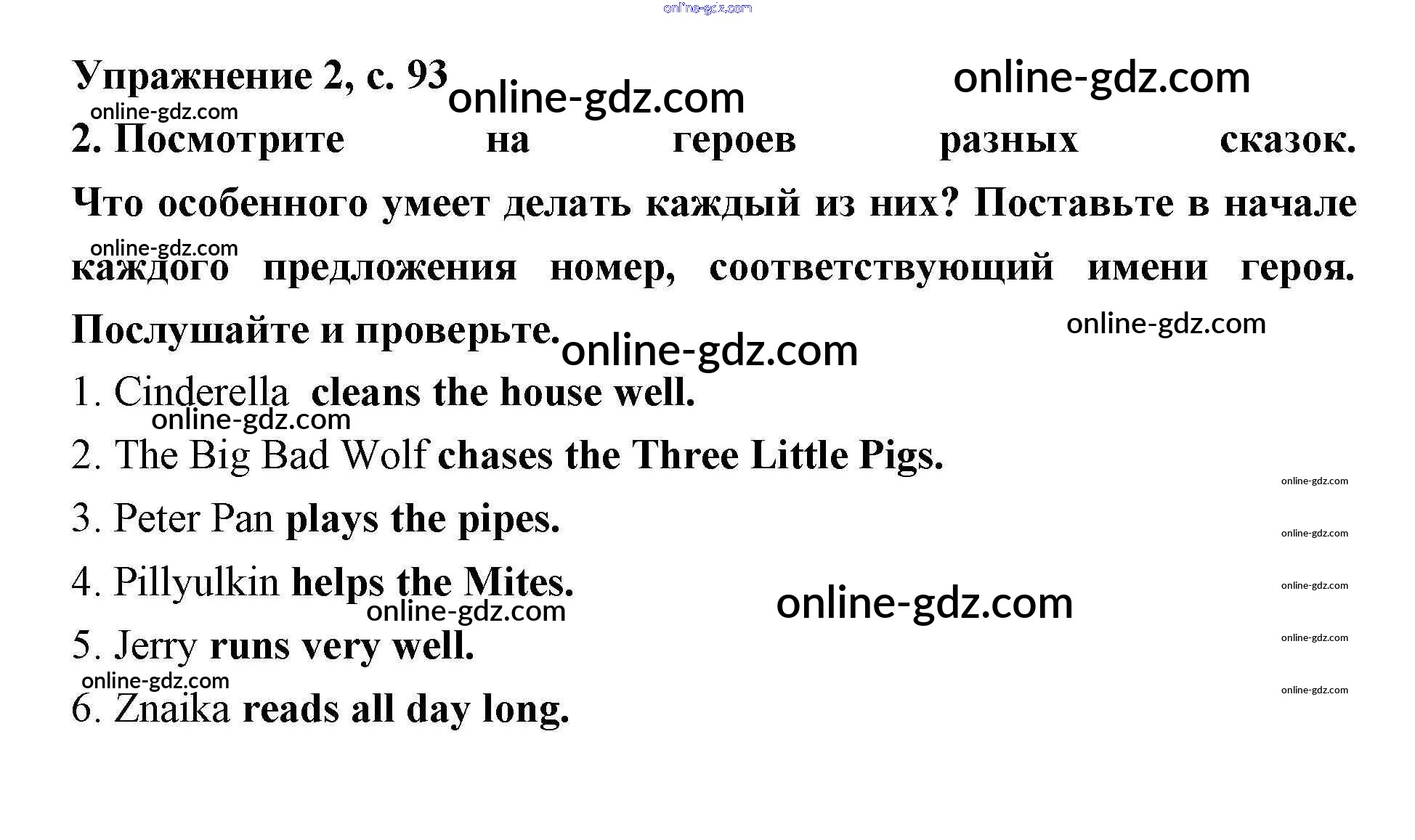 Готовые домашние задания по Английскому языку за 2 класс Рабочая тетрадь Кузовлёв, Перегудова 2011 - Lesson 51. Piter Pan plays the pipes! 93