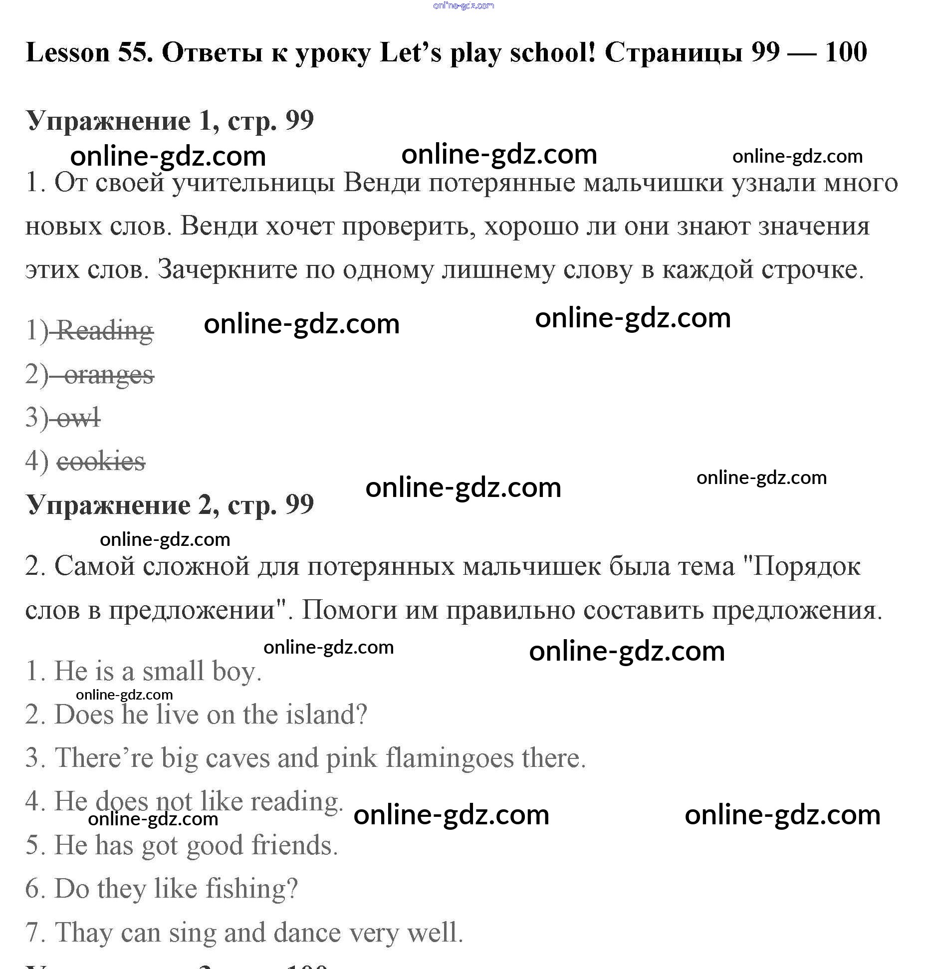 Готовые домашние задания по Английскому языку за 2 класс Рабочая тетрадь Кузовлёв, Перегудова 2011 - Lesson 55. Let’s play school! (с. 99 – 100) 99