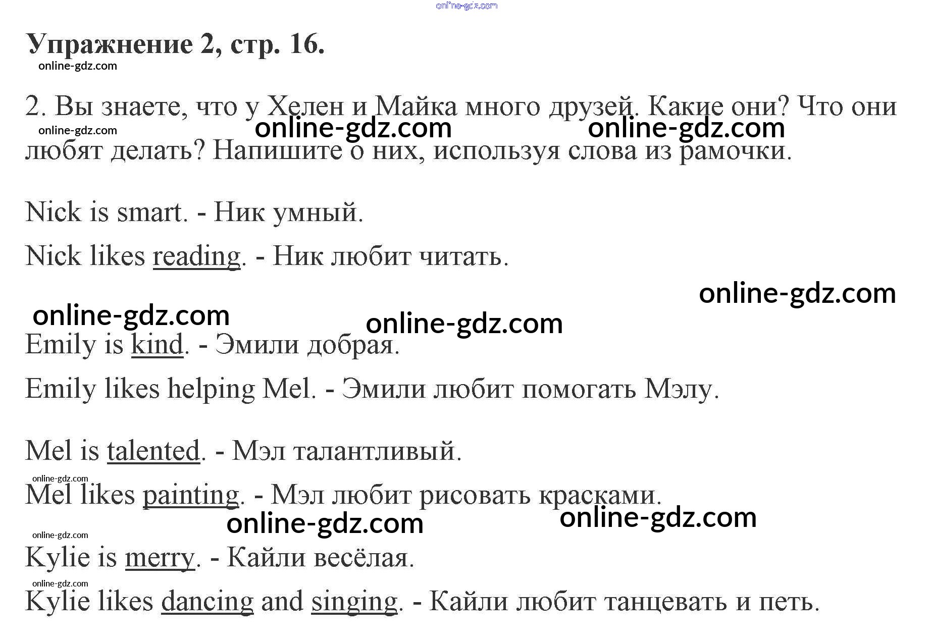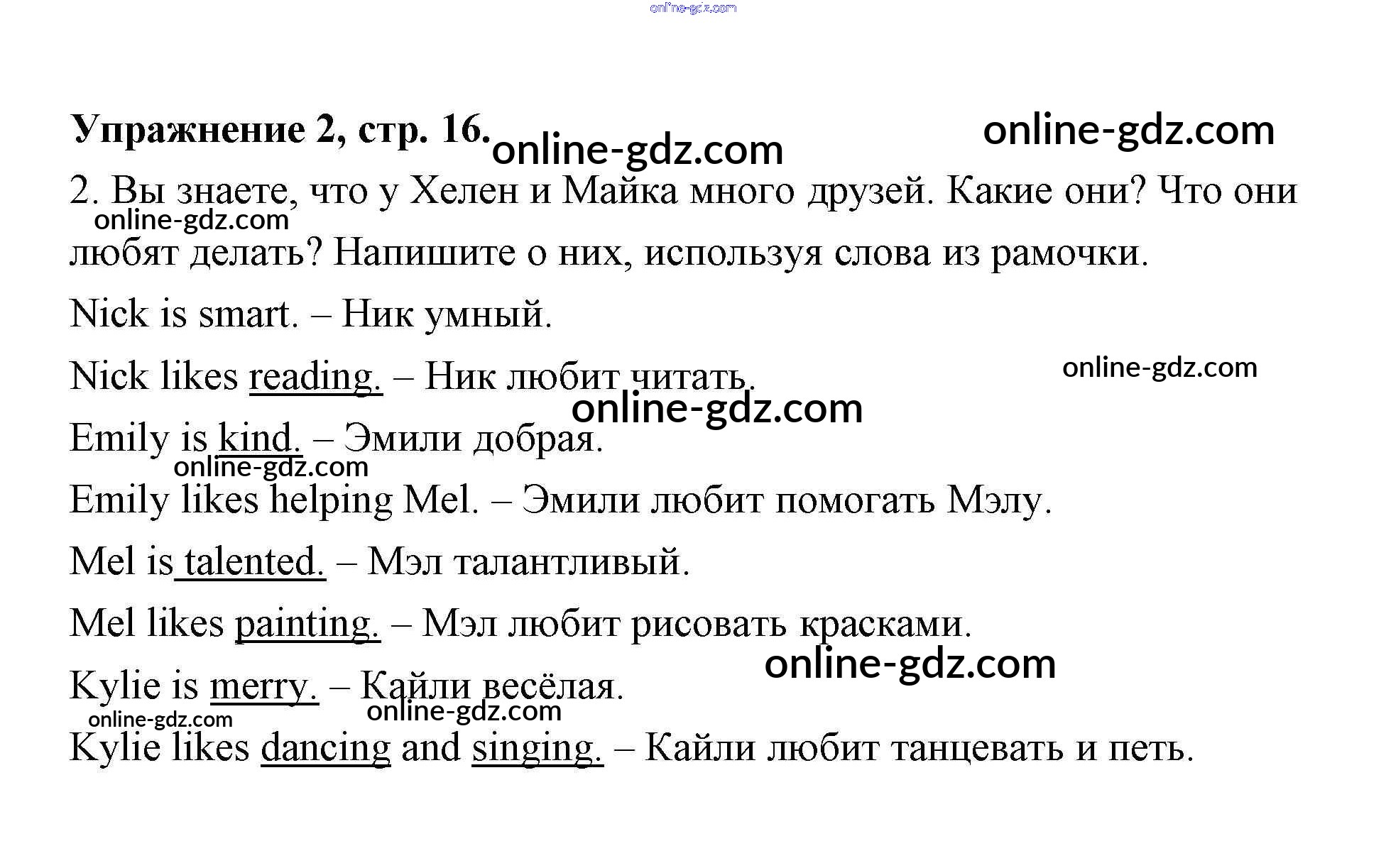 Готовые домашние задания по Английскому языку за 2 класс Рабочая тетрадь Кузовлёв, Перегудова 2011 - Lesson 8. Angelina likes dancing 16