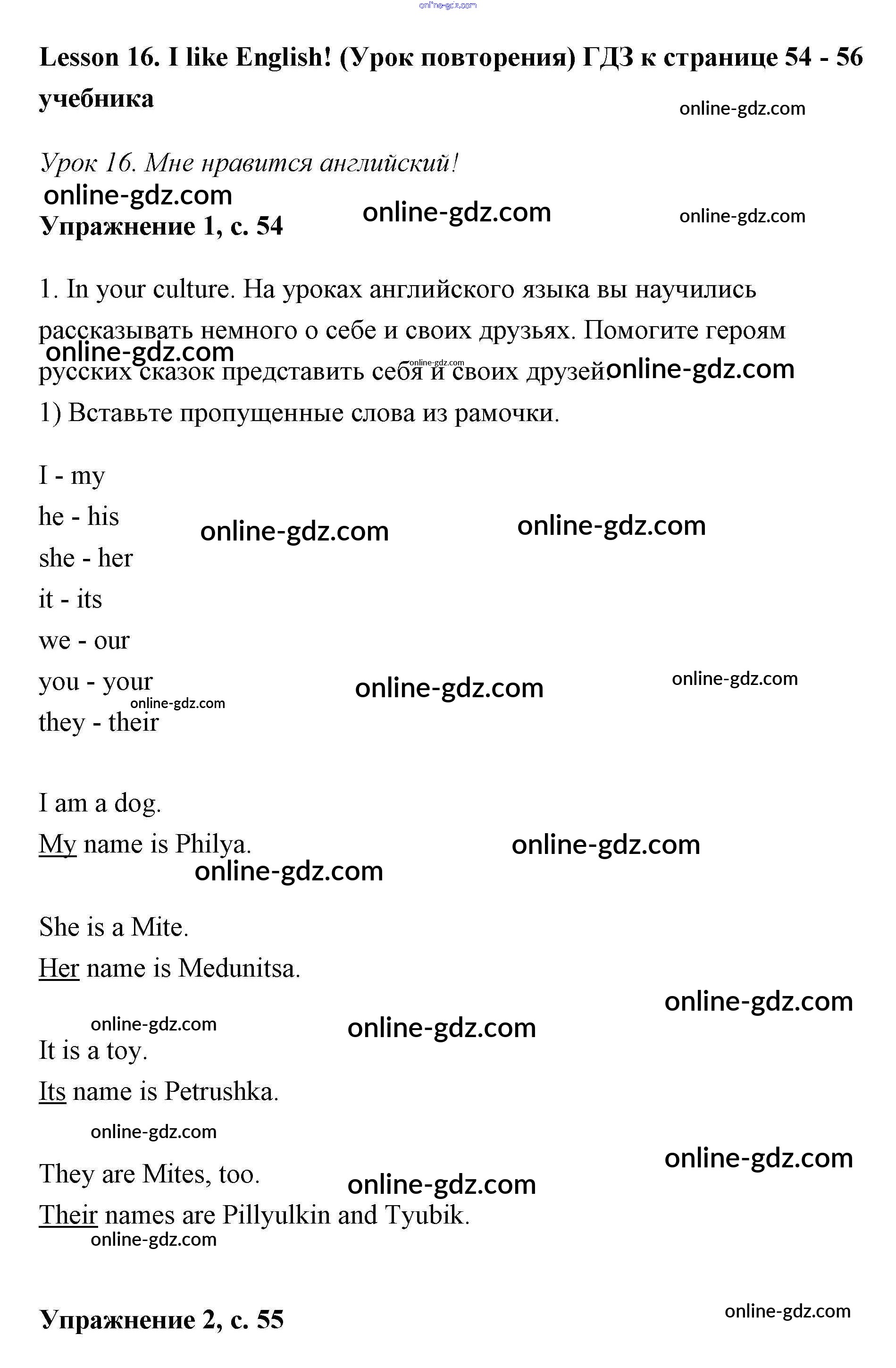 Готовые домашние задания по Английскому языку за 2 класс Учебник Кузовлёв, Перегудова Перспектива 2017 - Lesson 1-27 16