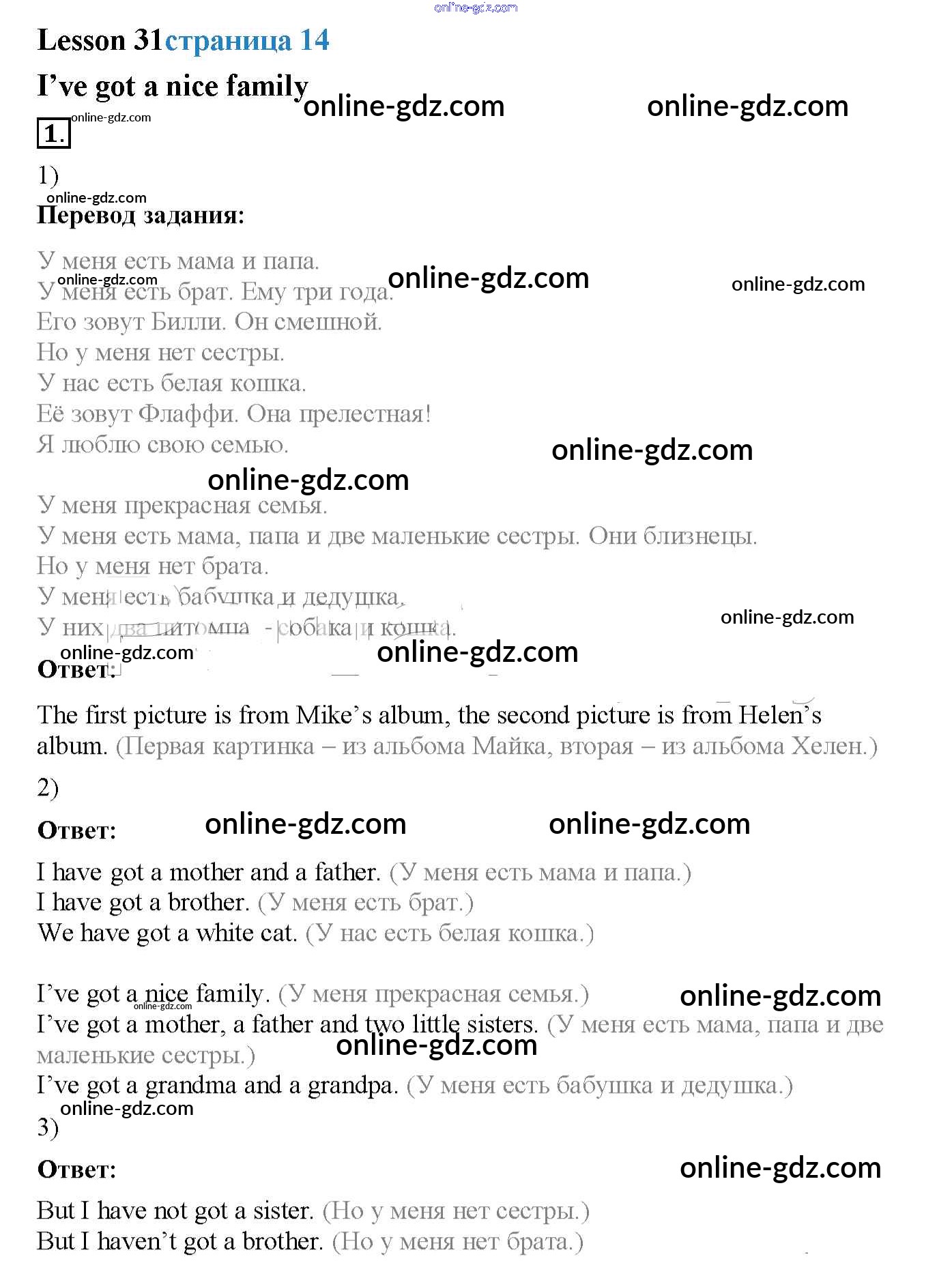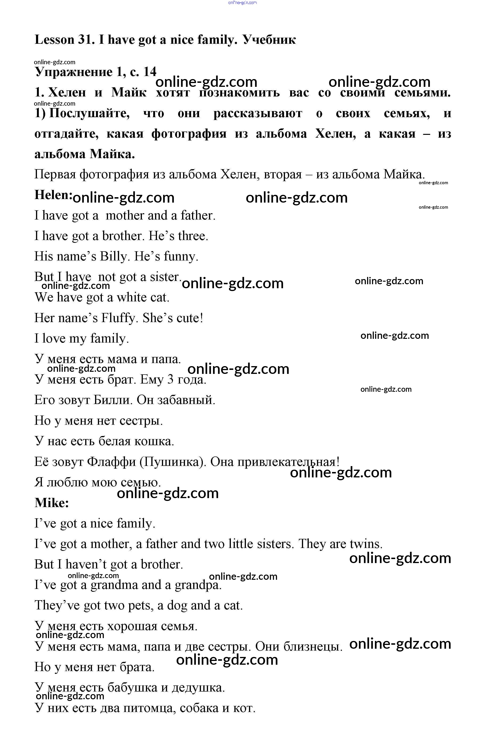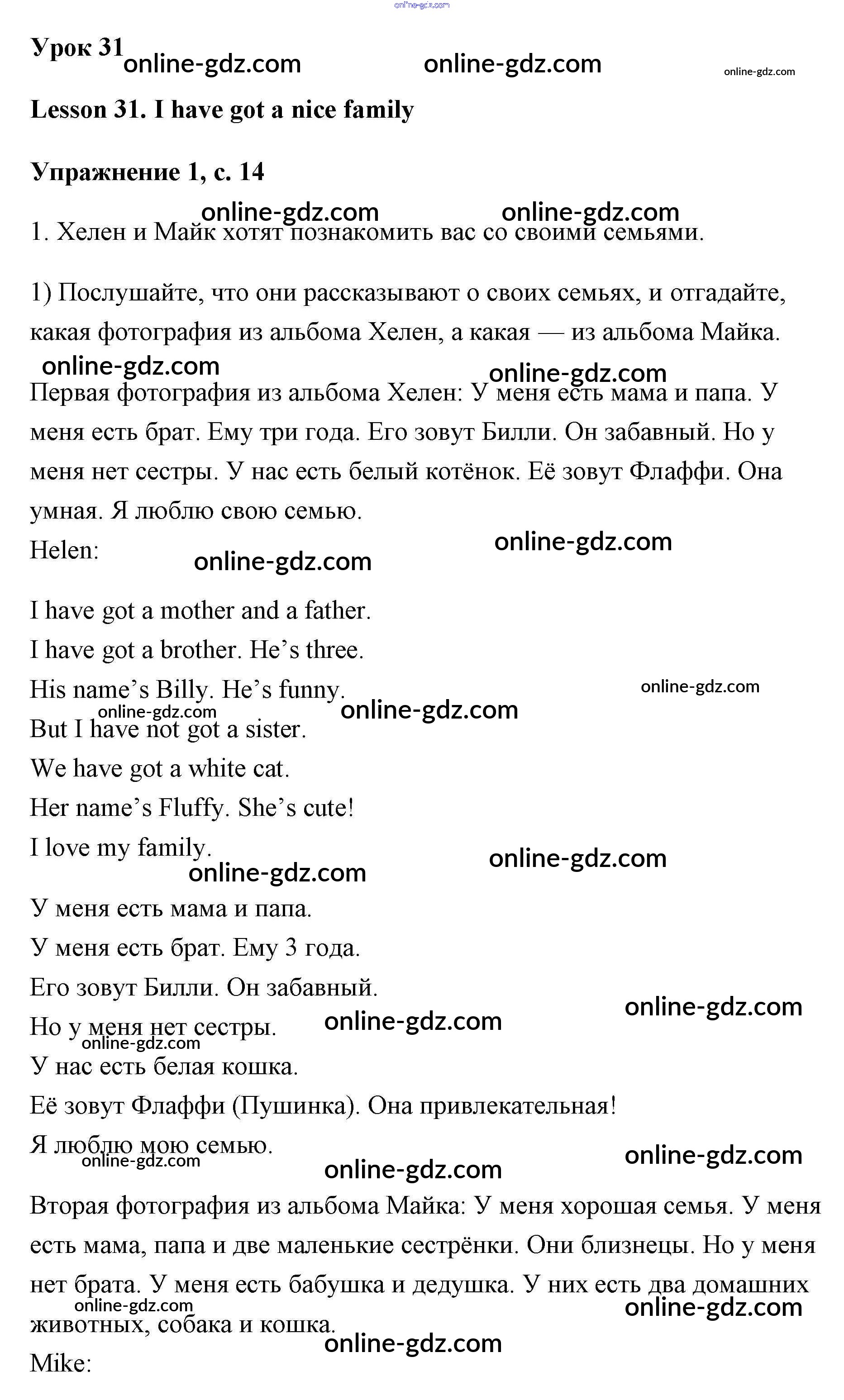 Готовые домашние задания по Английскому языку за 2 класс Учебник Кузовлёв, Перегудова Перспектива 2017 - Lesson 29-55 31