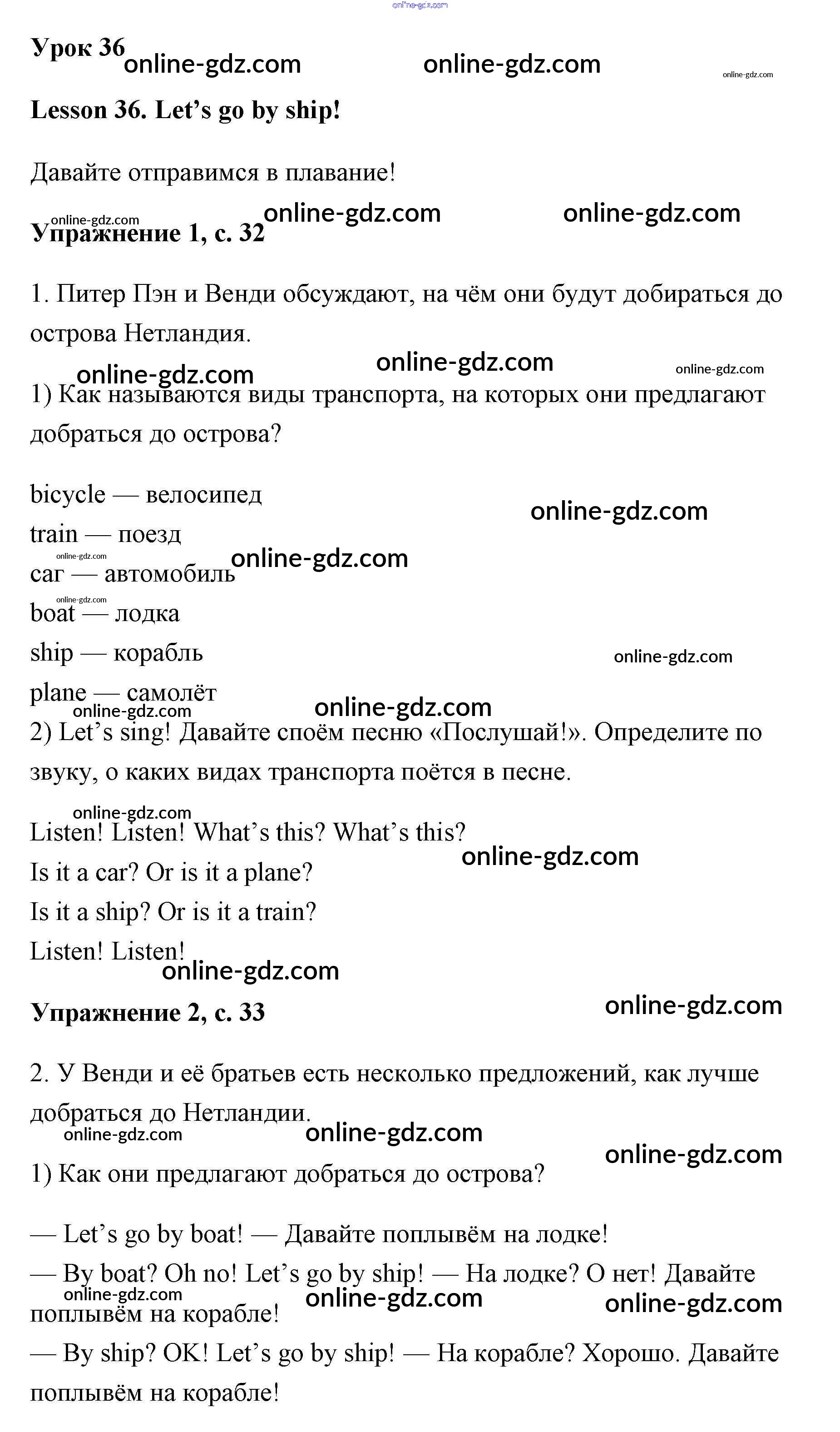 Готовые домашние задания по Английскому языку за 2 класс Учебник Кузовлёв, Перегудова Перспектива 2017 - Lesson 29-55 36