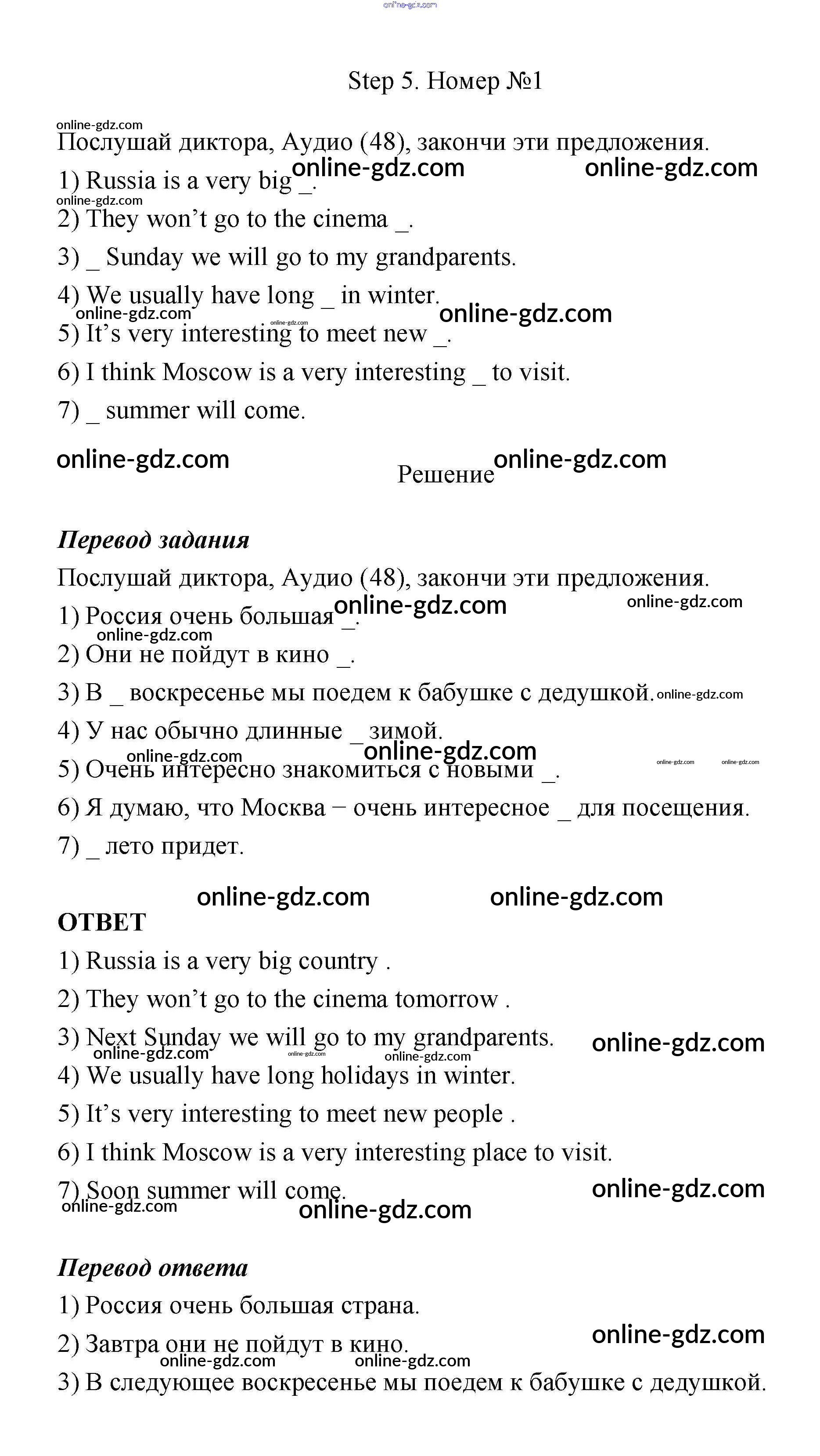 Готовые домашние задания по Английскому языку за 4 класс Рабочая тетрадь Афанасьева, Михеева Rainbow 2016 - Step 5 Unit 7 1
