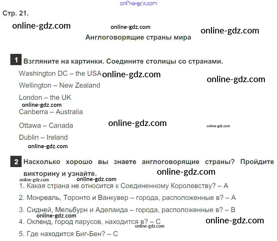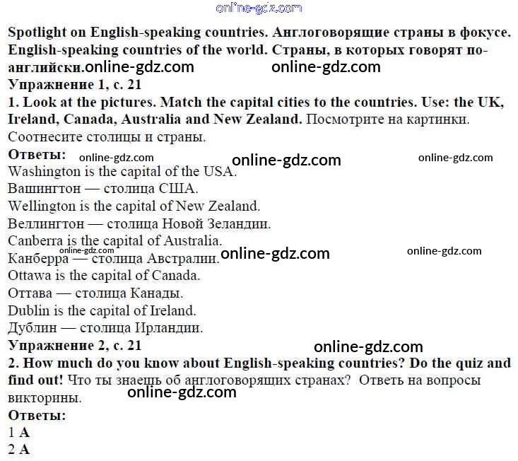 Готовые домашние задания по Английскому языку за 4 класс Учебник Быкова, Дули Spotlight 2015 - Модуль 1. Family & Friends! страница 21