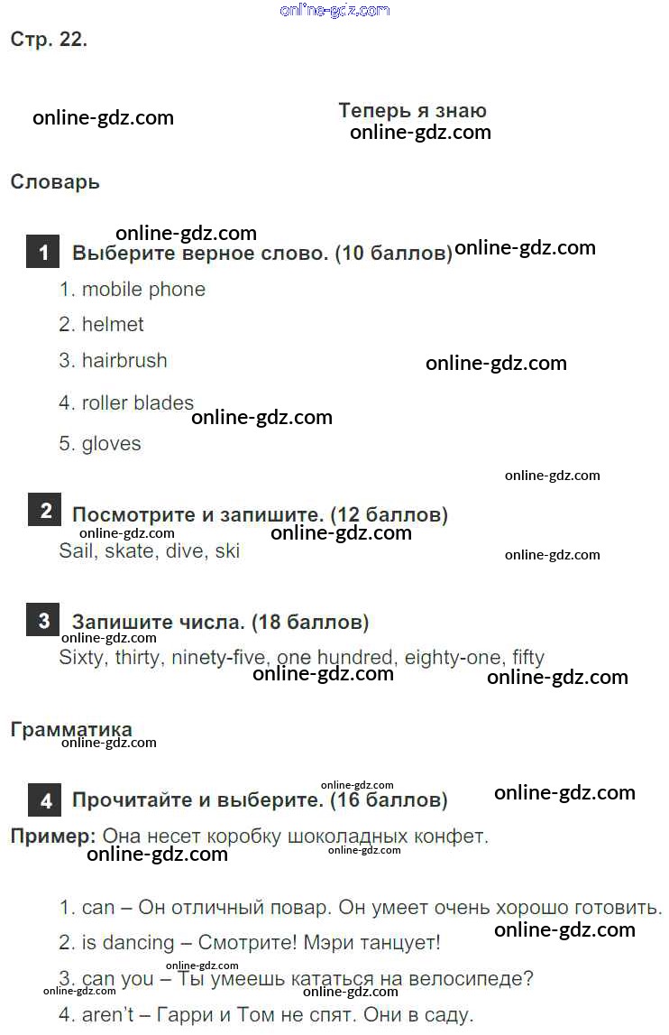 Готовые домашние задания по Английскому языку за 4 класс Учебник Быкова, Дули Spotlight 2015 - Модуль 1. Family & Friends! страница 22