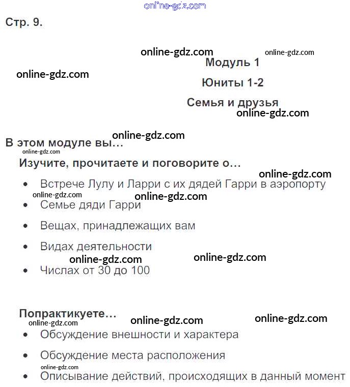 Готовые домашние задания по Английскому языку за 4 класс Учебник Быкова, Дули Spotlight 2015 - Модуль 1. Family & Friends! страница 9