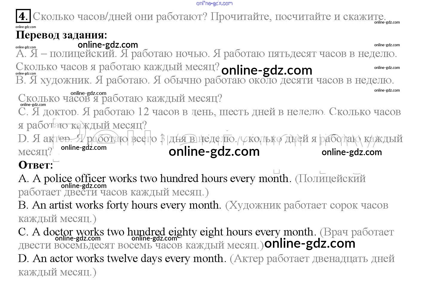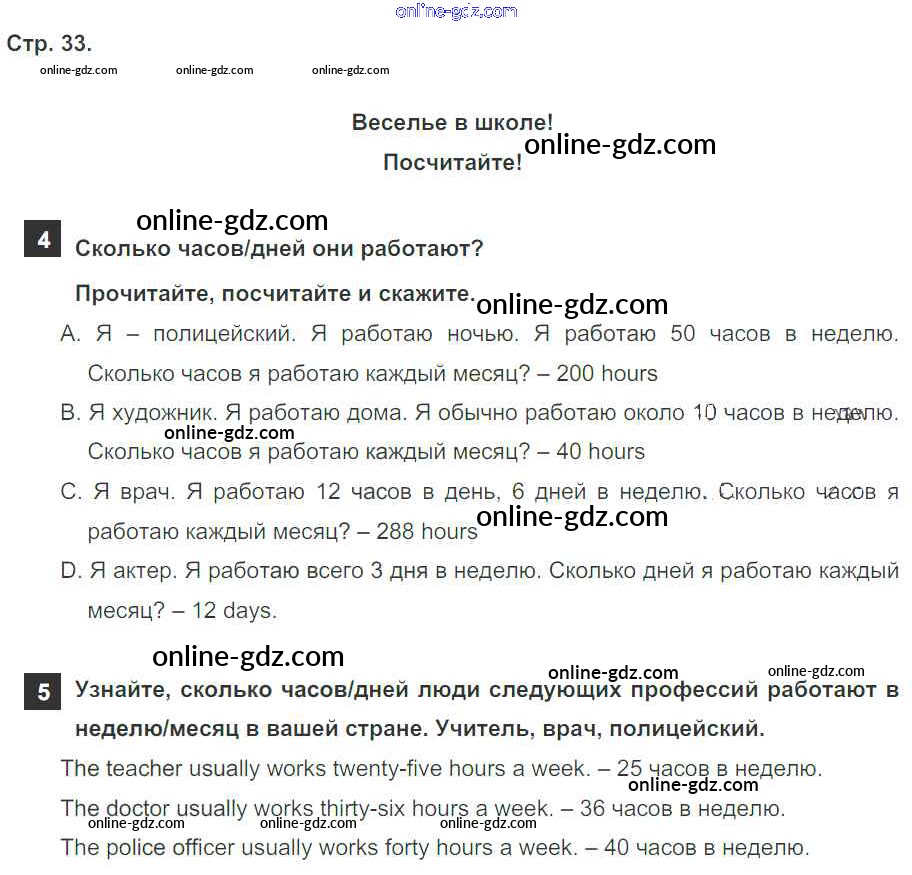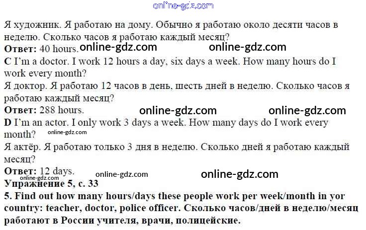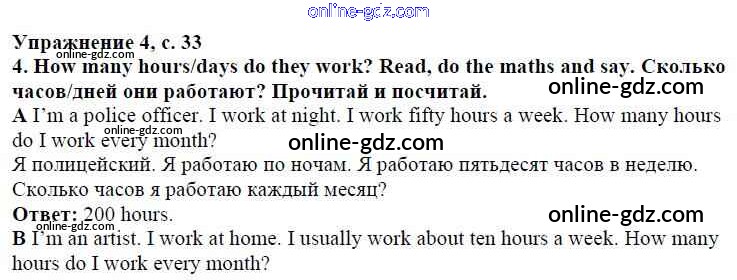 Готовые домашние задания по Английскому языку за 4 класс Учебник Быкова, Дули Spotlight 2015 - Модуль 2. A Working Day! страница 33