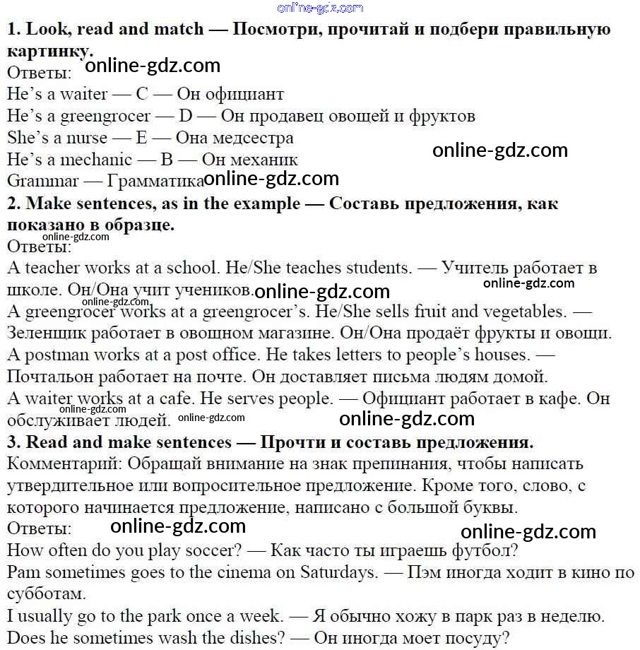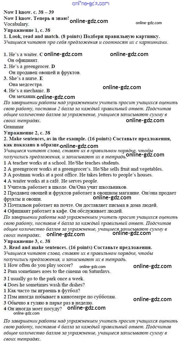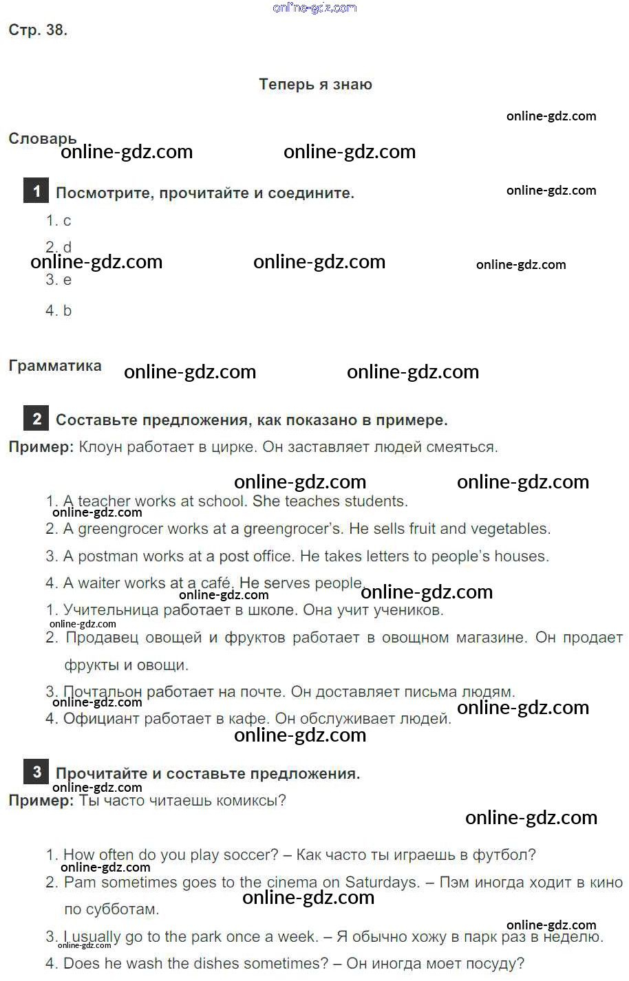 Готовые домашние задания по Английскому языку за 4 класс Учебник Быкова, Дули Spotlight 2015 - Модуль 2. A Working Day! страница 38