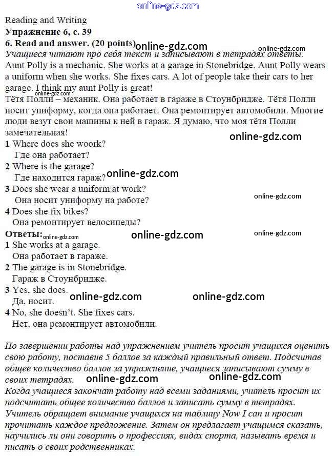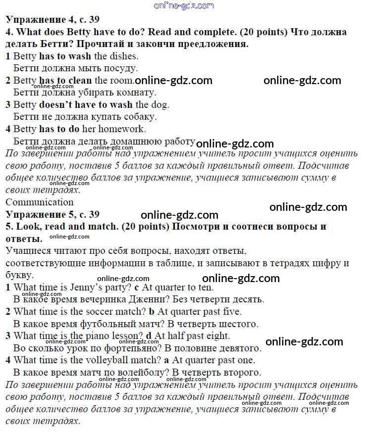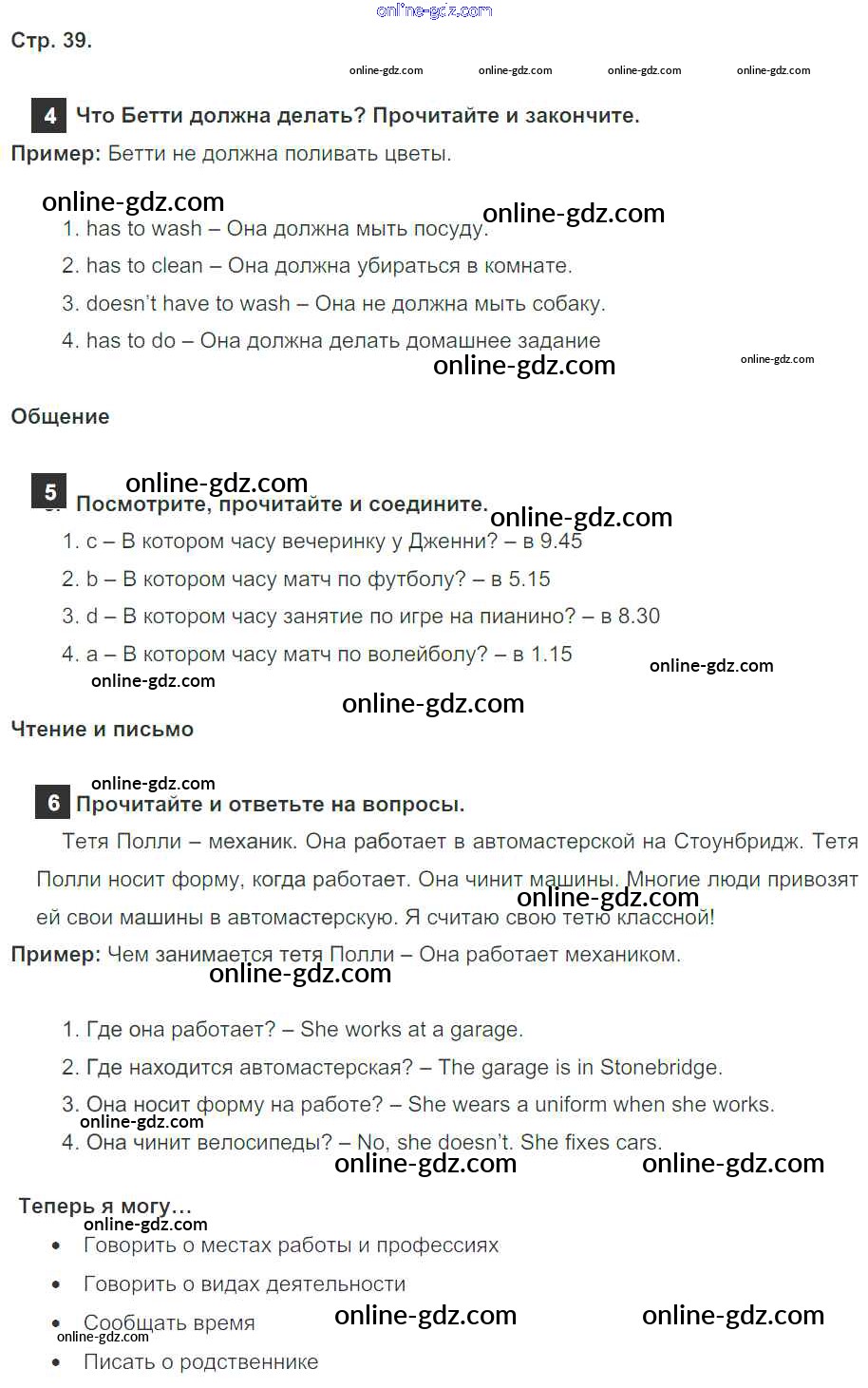 Готовые домашние задания по Английскому языку за 4 класс Учебник Быкова, Дули Spotlight 2015 - Модуль 2. A Working Day! страница 39