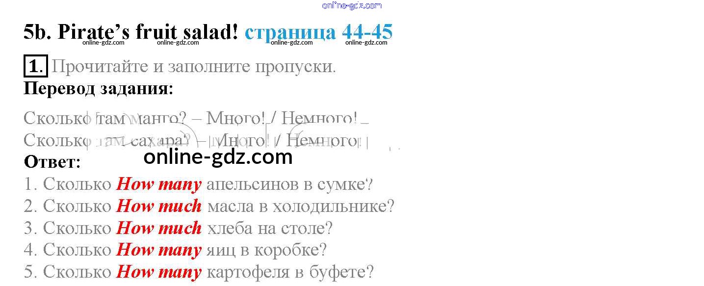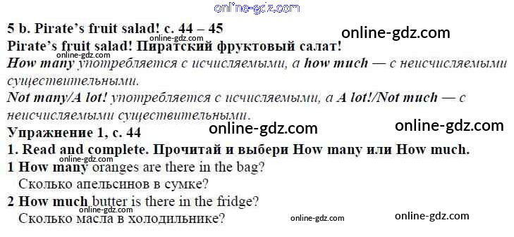 Готовые домашние задания по Английскому языку за 4 класс Учебник Быкова, Дули Spotlight 2015 - Модуль 3. Tasty Treats! страница 44
