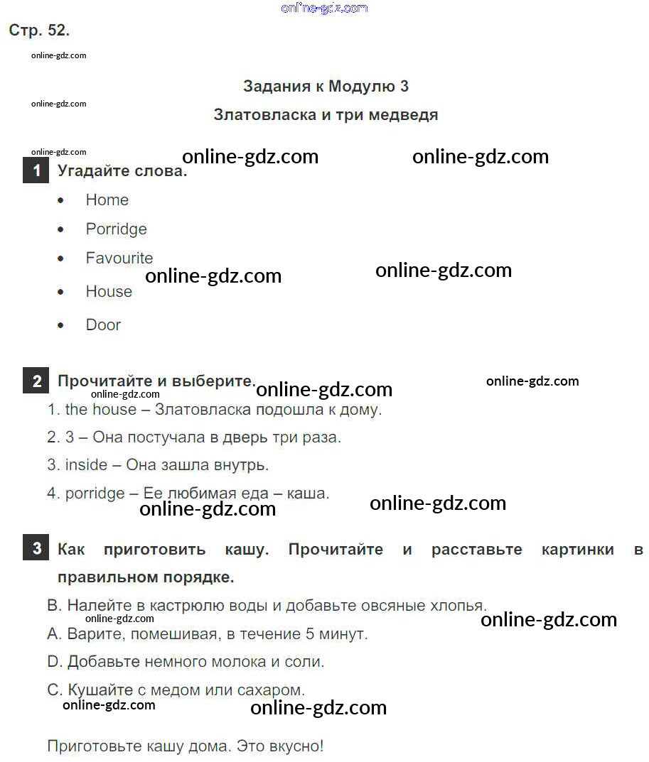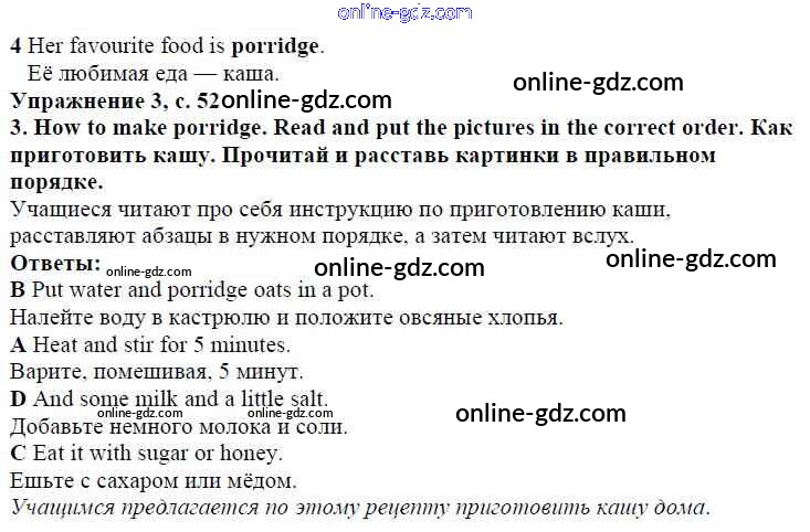 Готовые домашние задания по Английскому языку за 4 класс Учебник Быкова, Дули Spotlight 2015 - Модуль 3. Tasty Treats! страница 52