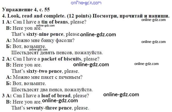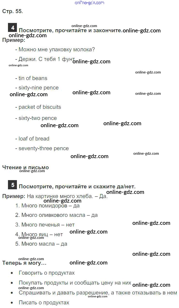 Готовые домашние задания по Английскому языку за 4 класс Учебник Быкова, Дули Spotlight 2015 - Модуль 3. Tasty Treats! страница 55