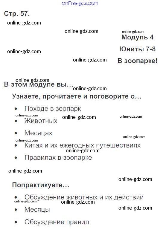 Готовые домашние задания по Английскому языку за 4 класс Учебник Быкова, Дули Spotlight 2015 - Модуль 4. At The Zoo! страница 57