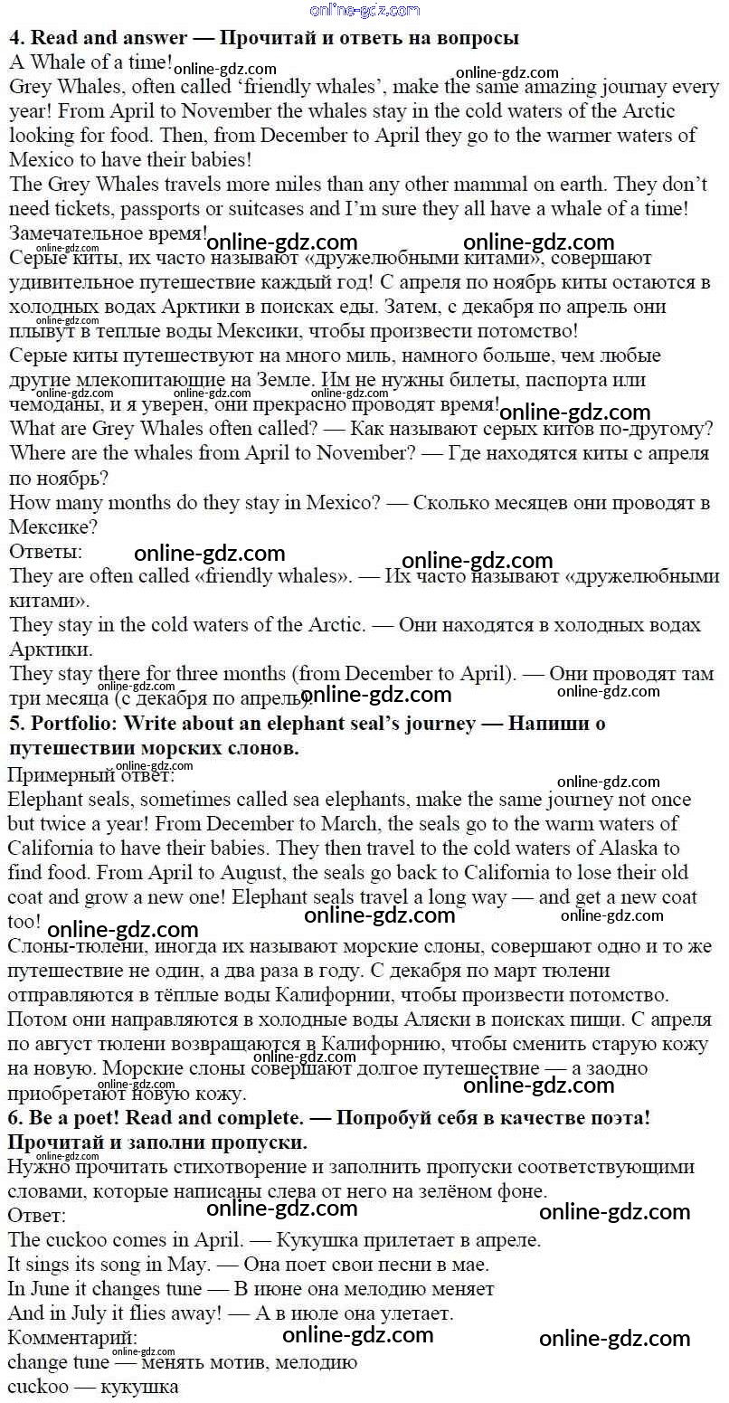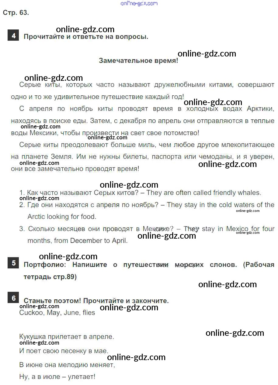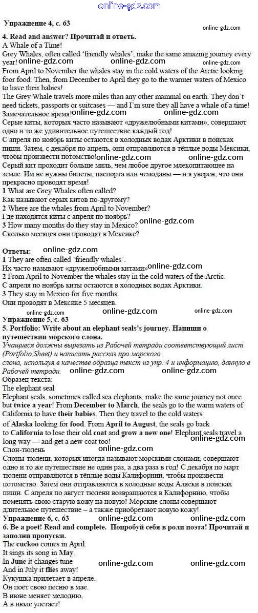 Готовые домашние задания по Английскому языку за 4 класс Учебник Быкова, Дули Spotlight 2015 - Модуль 4. At The Zoo! страница 63