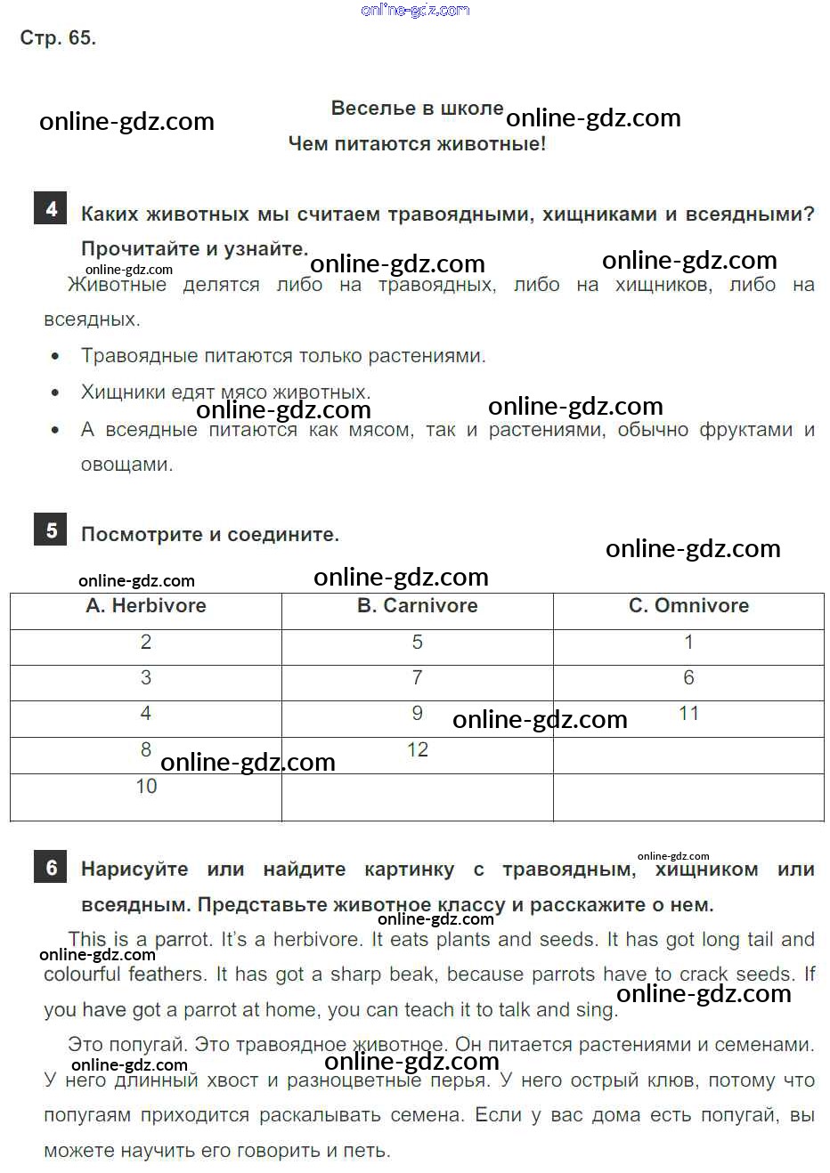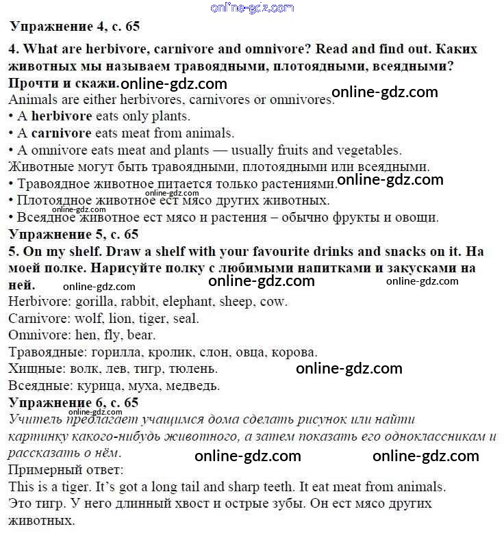 Готовые домашние задания по Английскому языку за 4 класс Учебник Быкова, Дули Spotlight 2015 - Модуль 4. At The Zoo! страница 65