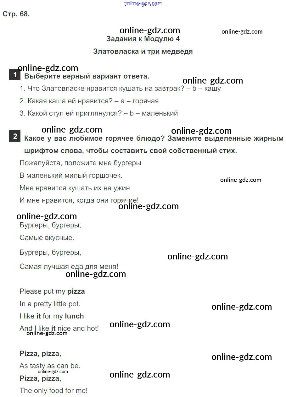 Готовые домашние задания по Английскому языку за 4 класс Учебник Быкова, Дули Spotlight 2015 - Модуль 4. At The Zoo! страница 68