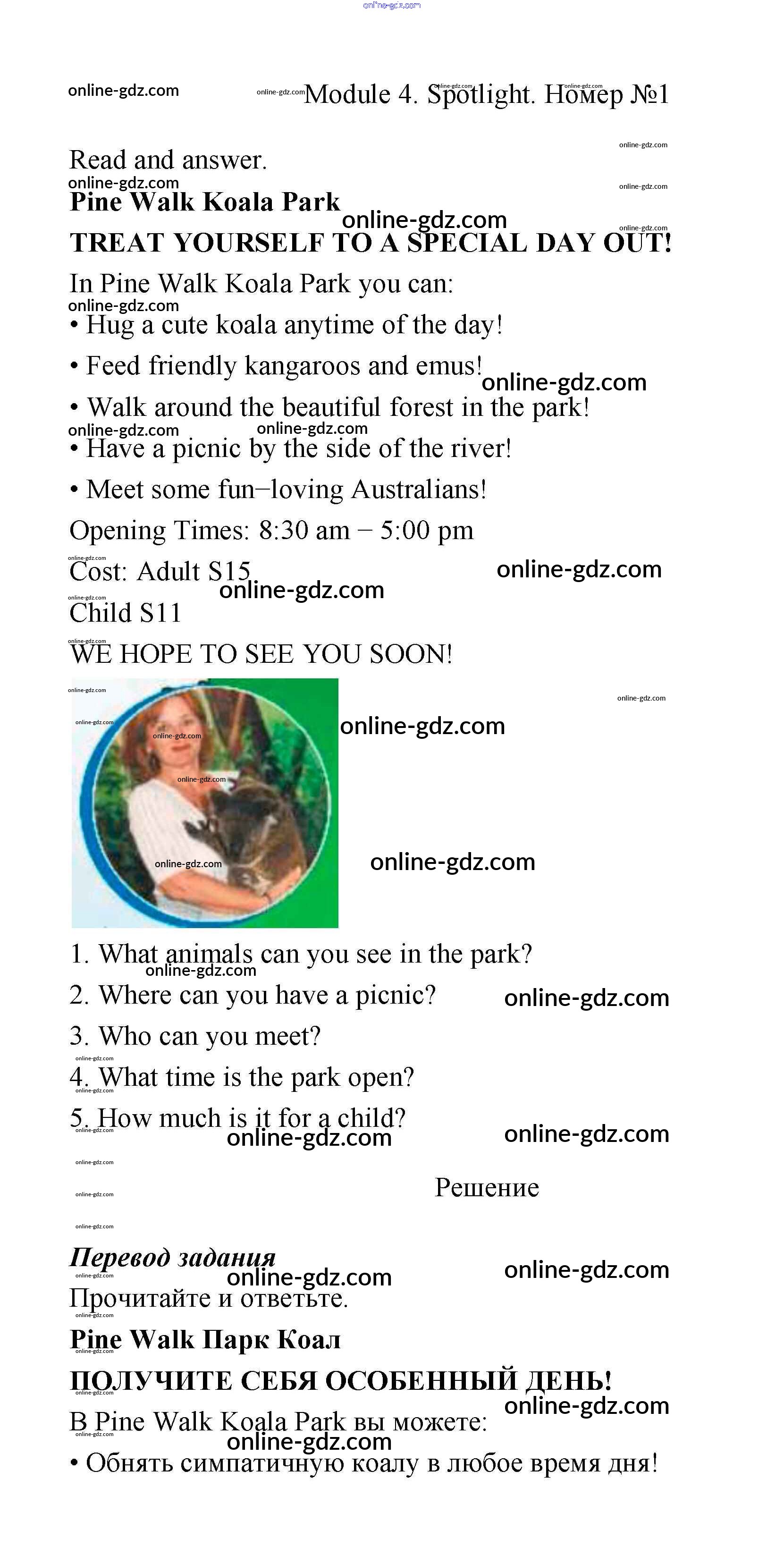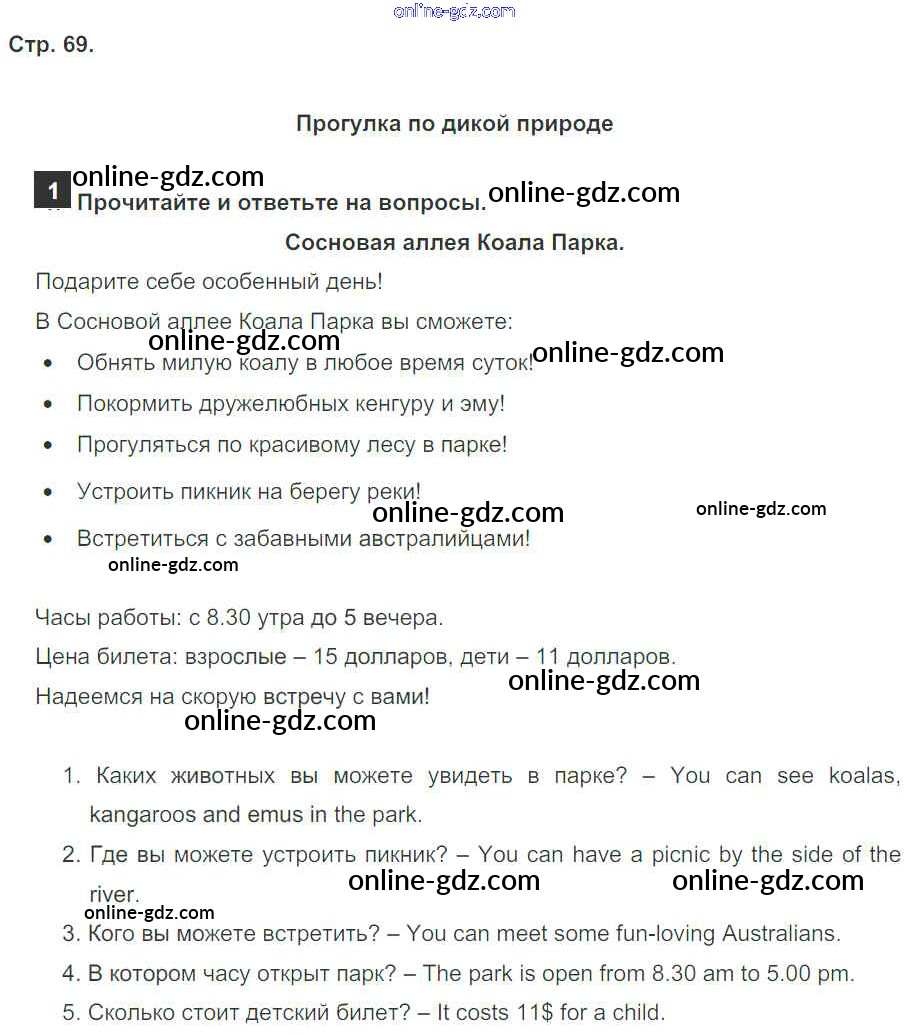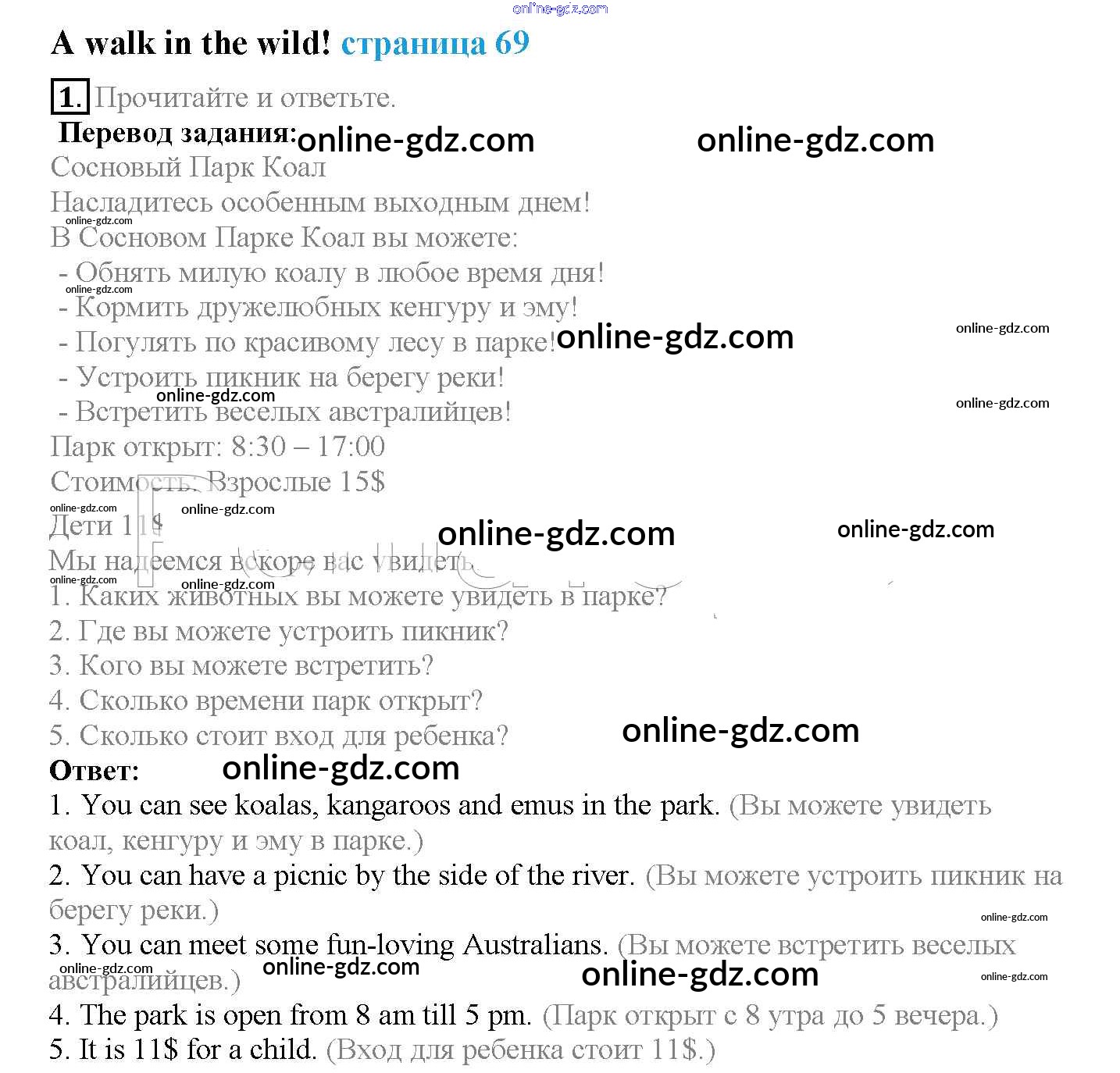 Готовые домашние задания по Английскому языку за 4 класс Учебник Быкова, Дули Spotlight 2015 - Модуль 4. At The Zoo! страница 69