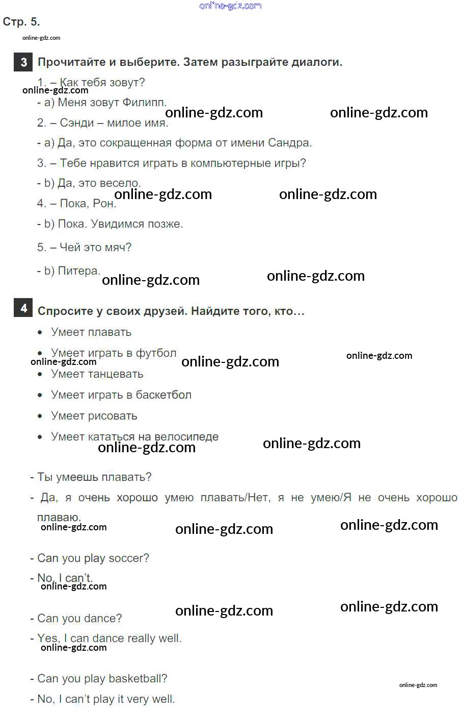 Готовые домашние задания по Английскому языку за 4 класс Учебник Быкова, Дули Spotlight 2015 - Starter Unit. Back together! страница 5