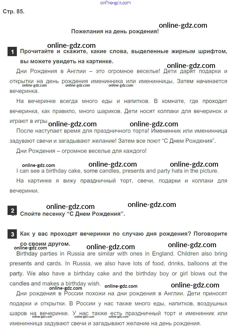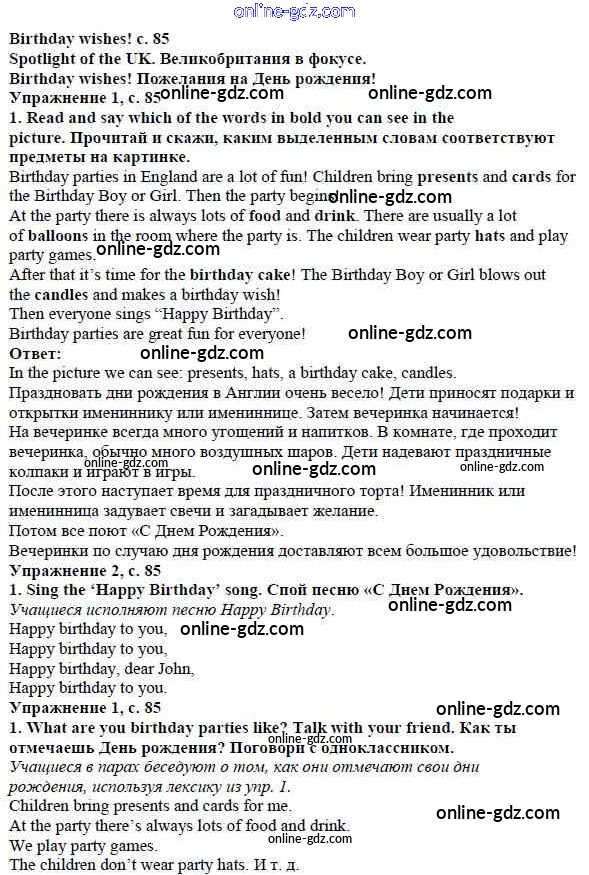 Готовые домашние задания по Английскому языку за 4 класс Учебник Быкова, Дули Spotlight 2015 - Модуль 5. Where Were You Yesterday! страница 85