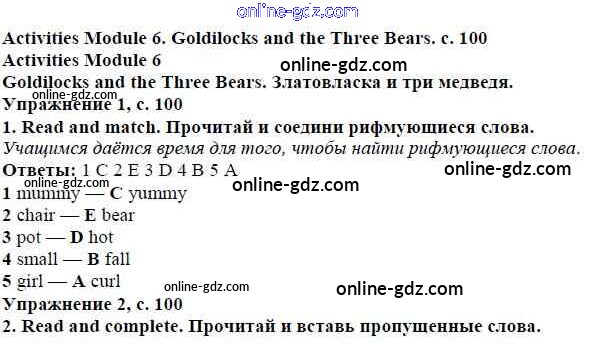 Готовые домашние задания по Английскому языку за 4 класс Учебник Быкова, Дули Spotlight 2015 - Модуль 6. Tell The Tale! страница 100