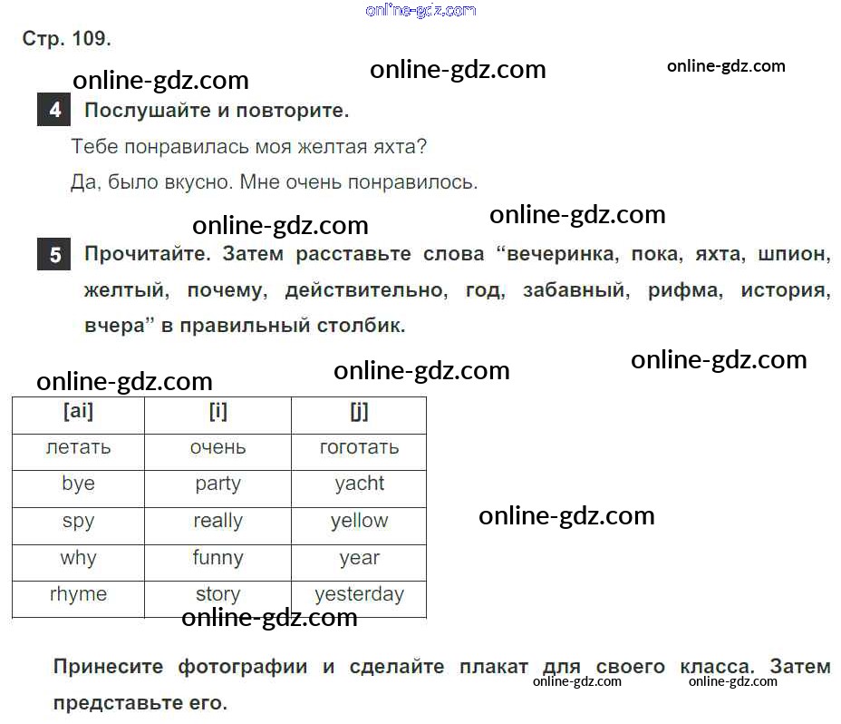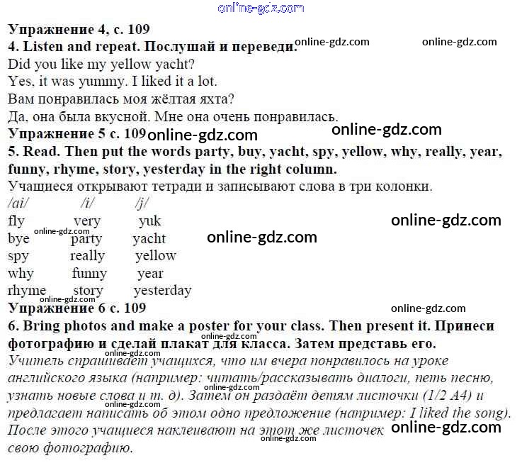 Готовые домашние задания по Английскому языку за 4 класс Учебник Быкова, Дули Spotlight 2015 - Модуль 7. Days To Remember! страница 109