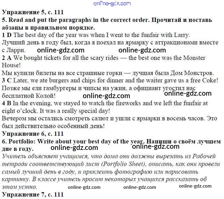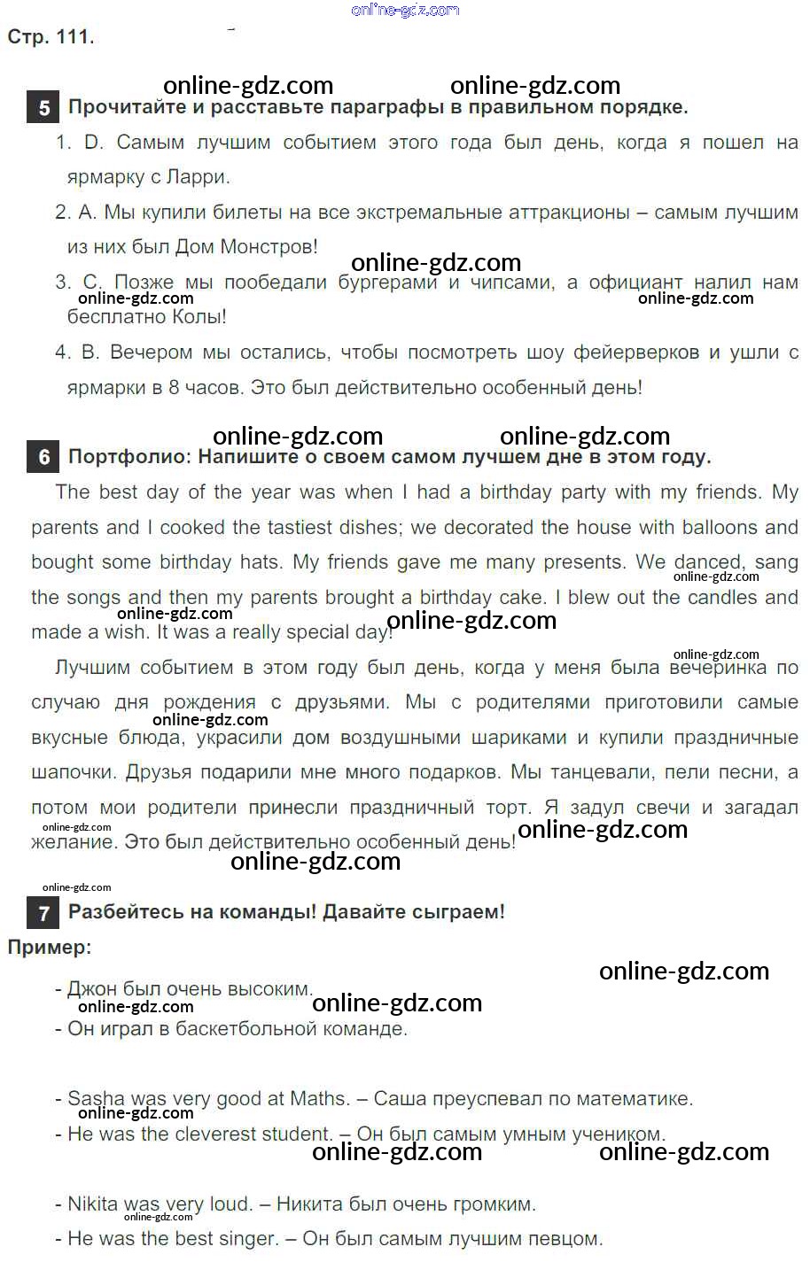 Готовые домашние задания по Английскому языку за 4 класс Учебник Быкова, Дули Spotlight 2015 - Модуль 7. Days To Remember! страница 111